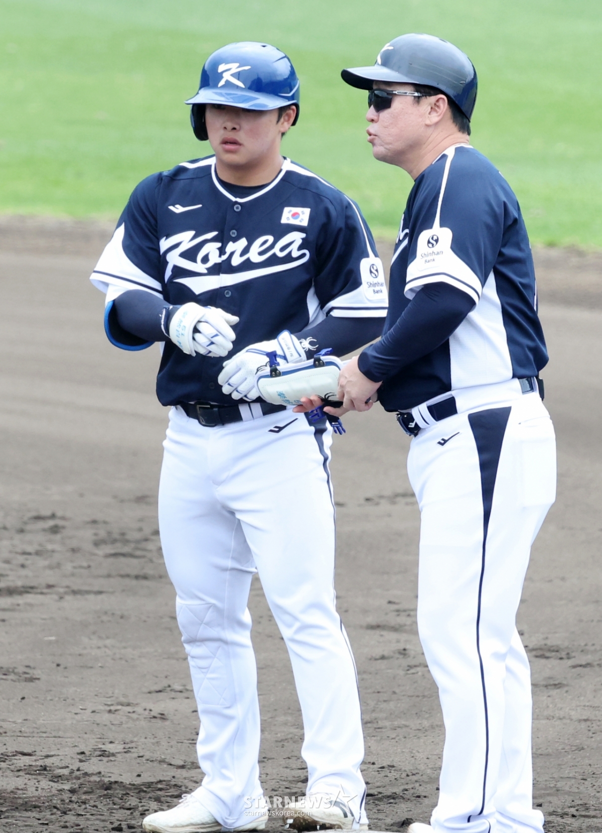 *このコンテンツはAIによって翻訳されました。WBC代表チームが19日、沖縄のオンナソン赤間球場で三星(サムスン)ライオンズと練習試合を行った。代表チームのムン·ヒョンビンが6回表、1死2塁で1打点のタイムリーヒットを放って出塁した後、李ドンウクコーチの歓迎を受けている..© STARNEWS. 無断転載・再配布禁止*このコンテンツはAIによって翻訳されました。