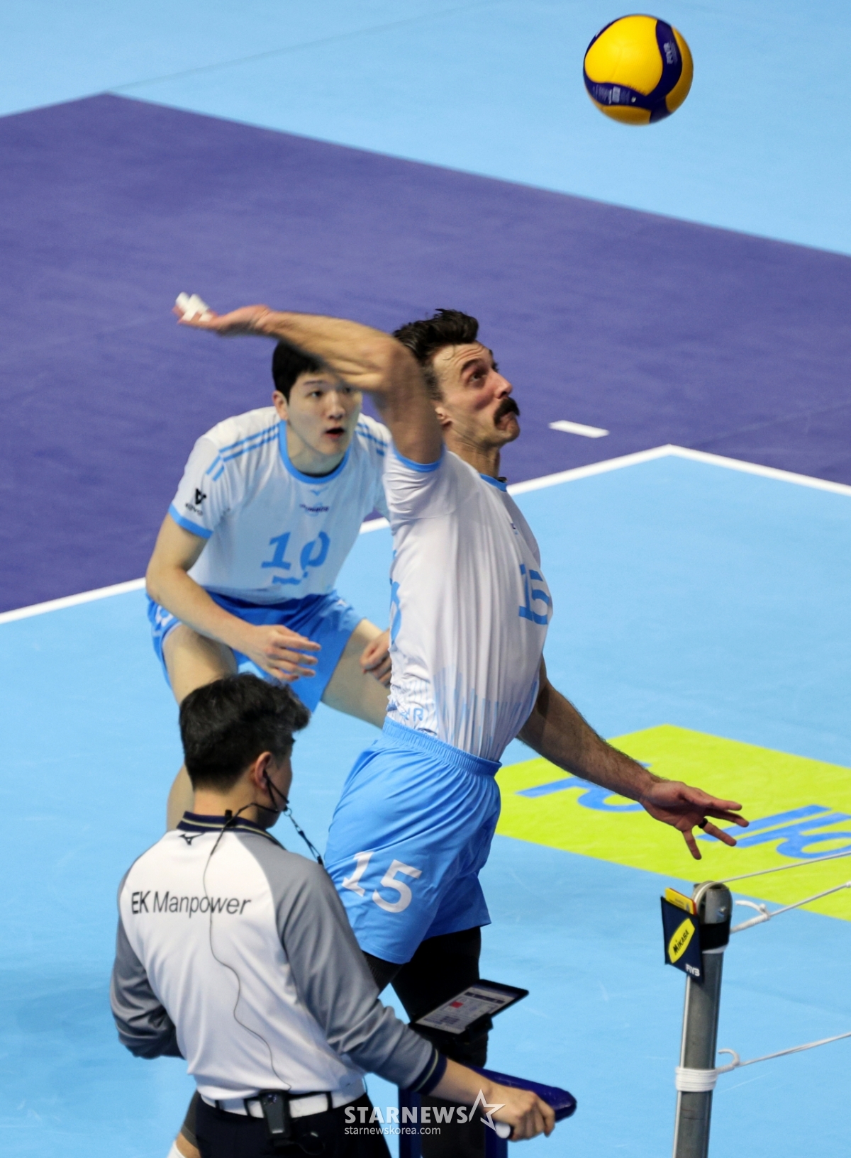 大韓航空のラッセルが22日、桂陽体育館で開かれたジンエアー2025-2026Vリーグの大韓航空と現代キャピタルの試合で強打を放っている。 2026.02.202.