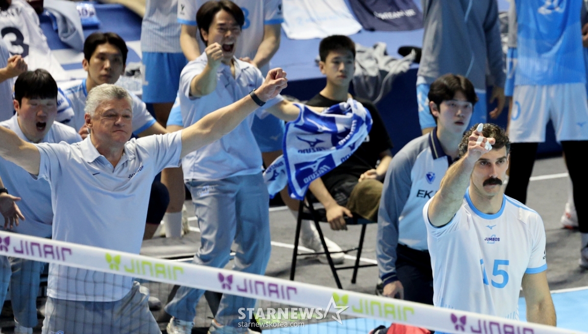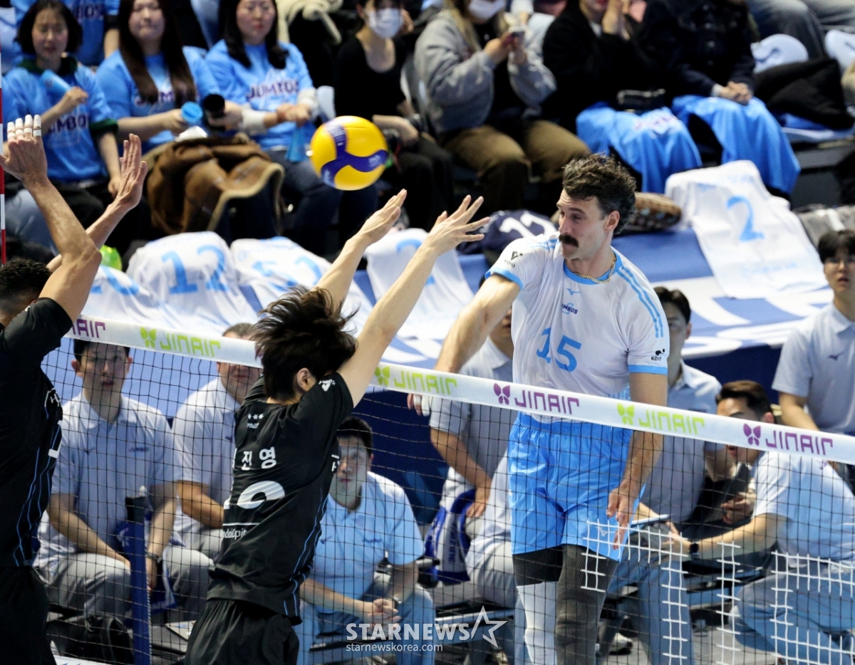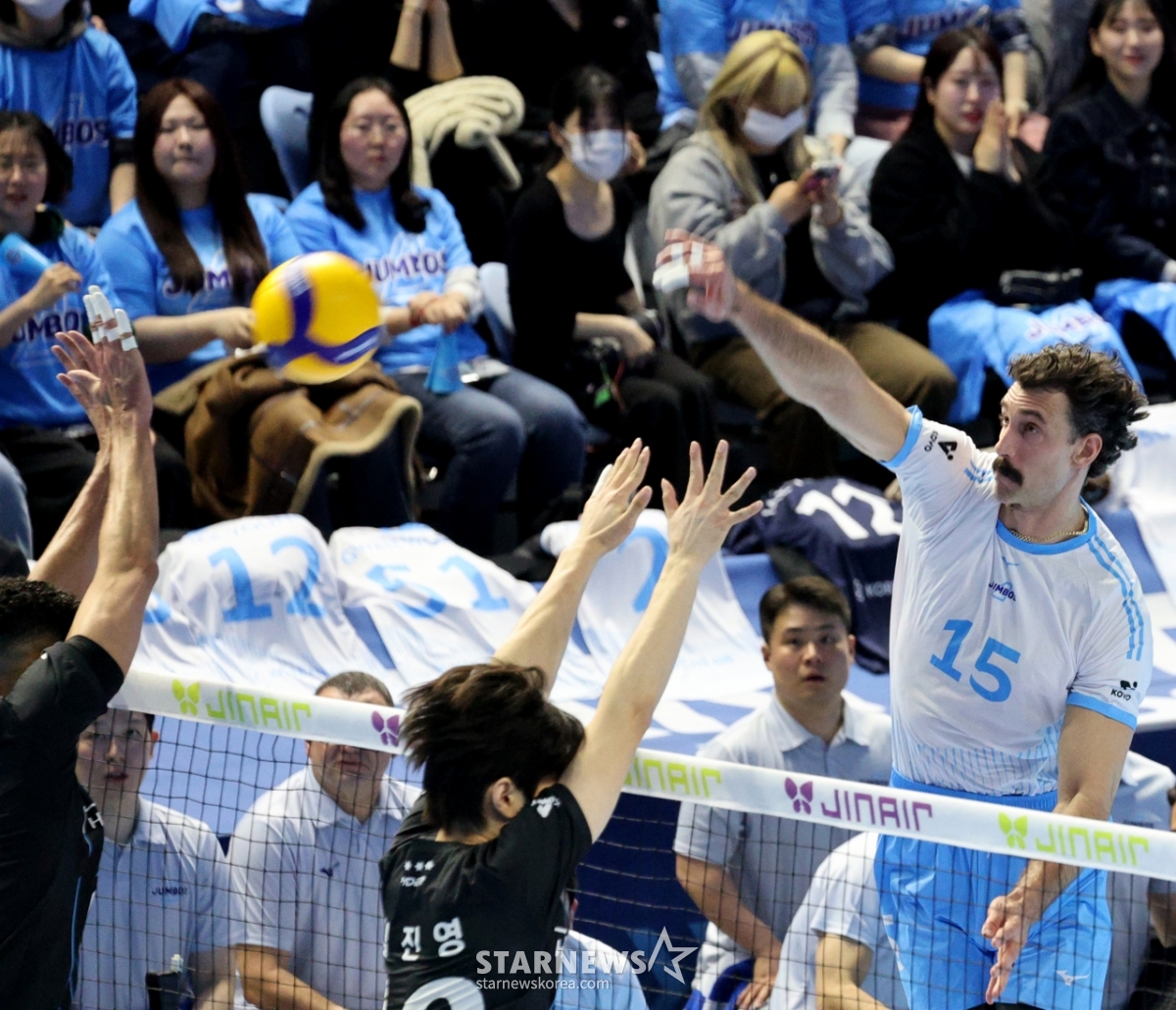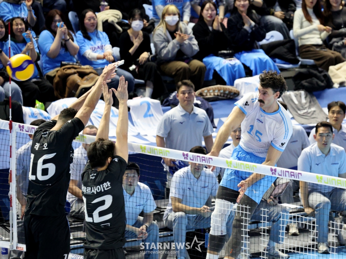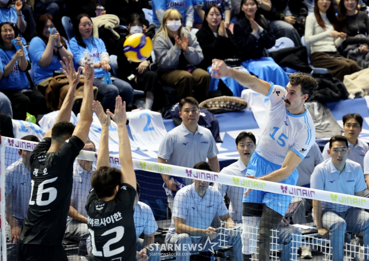 *このコンテンツはAIによって翻訳されました。大韓航空のラッセルが22日、桂陽体育館で行われたジンエアー2025-2026Vリーグの大韓航空と現代キャピタルの試合で強打を放ち、得点している。 2026.02.202.© STARNEWS. 無断転載・再配布禁止*このコンテンツはAIによって翻訳されました。