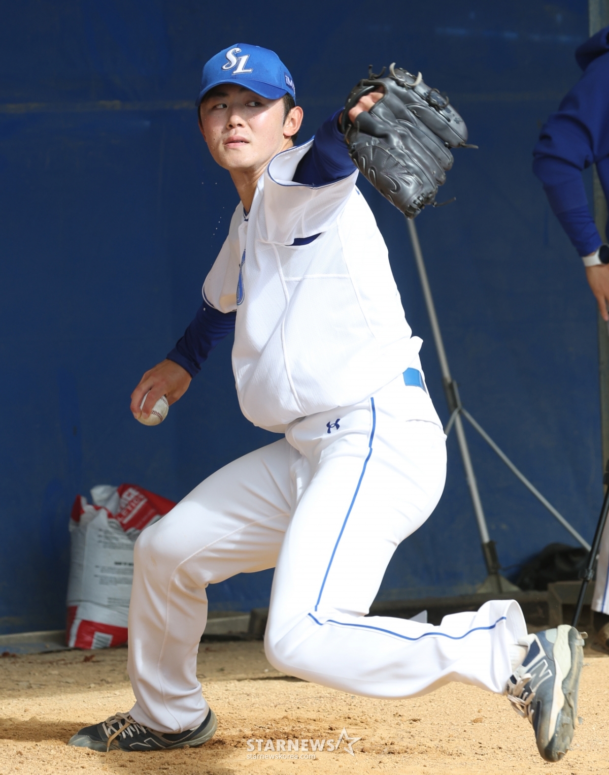 *このコンテンツはAIによって翻訳されました。三星(サムスン)ライオンズが22日、沖縄のオンナソン赤間ボールパークでスプリングキャンプを行った。宮地がブルペンピッチングの練習をしている。© STARNEWS. 無断転載・再配布禁止*このコンテンツはAIによって翻訳されました。