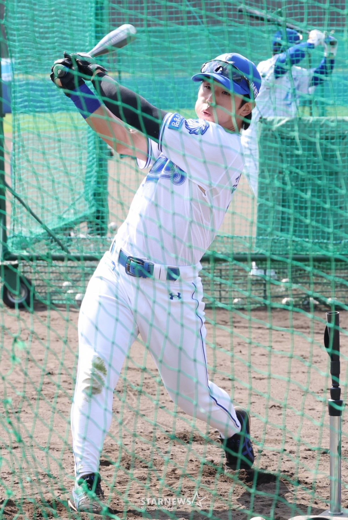 金ソンユンが打撃練習をしている。