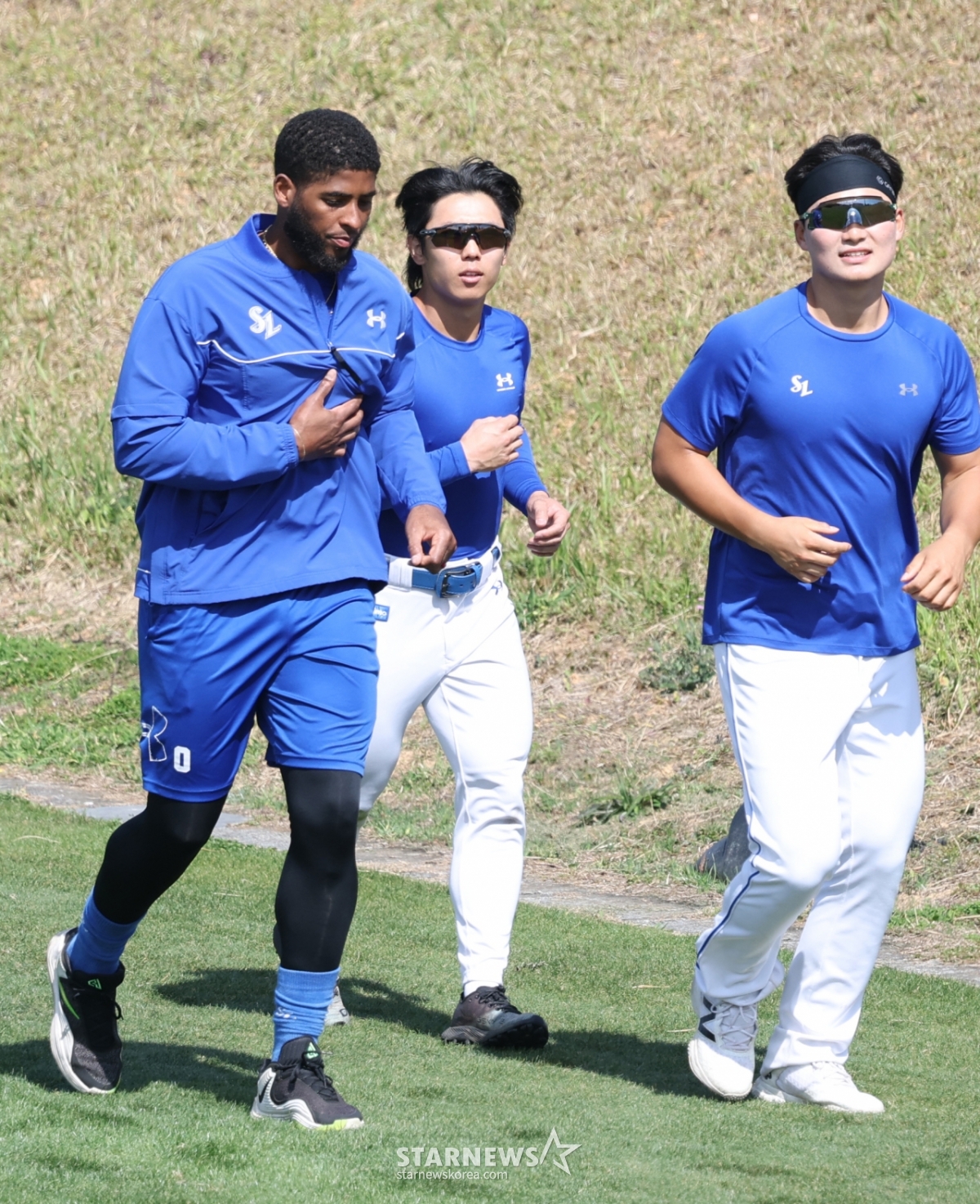 *このコンテンツはAIによって翻訳されました。三星(サムスン)ライオンズが22日、沖縄のオンナソン赤間ボールパークでスプリングキャンプを行った。ディアス(左)をはじめとする選手たちがランニングトレーニングをしている。© STARNEWS. 無断転載・再配布禁止*このコンテンツはAIによって翻訳されました。