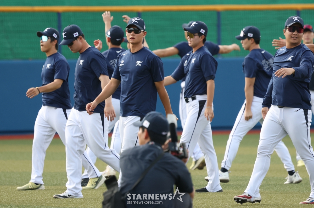 *このコンテンツはAIによって翻訳されました。WBC韓国野球代表チームが24日、沖縄県の嘉手納野球場でKIAタイガースと練習試合を行った。金ジュウォンをはじめ代表チームの選手たちがストレッチングをしている。© STARNEWS. 無断転載・再配布禁止*このコンテンツはAIによって翻訳されました。