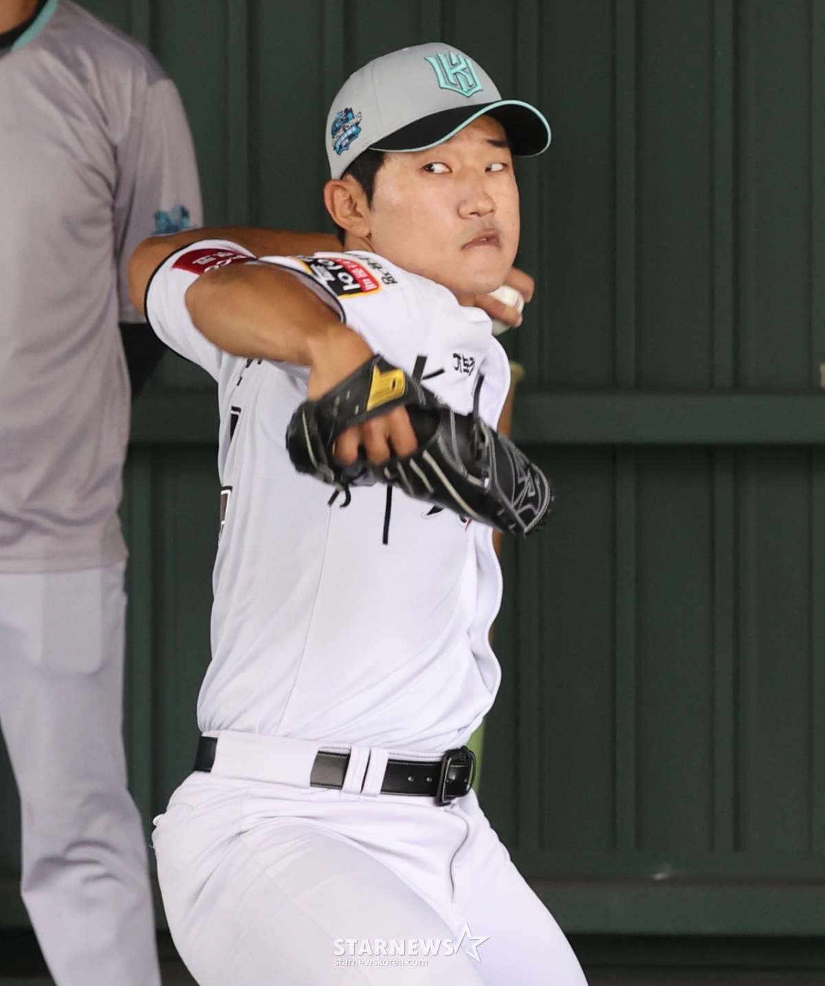 イム·ジュンヒョンがブルペンピッチングをしている。