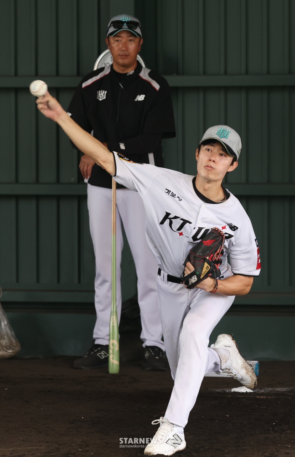 ウォン·サンヒョンがブルペンピッチングをしている。