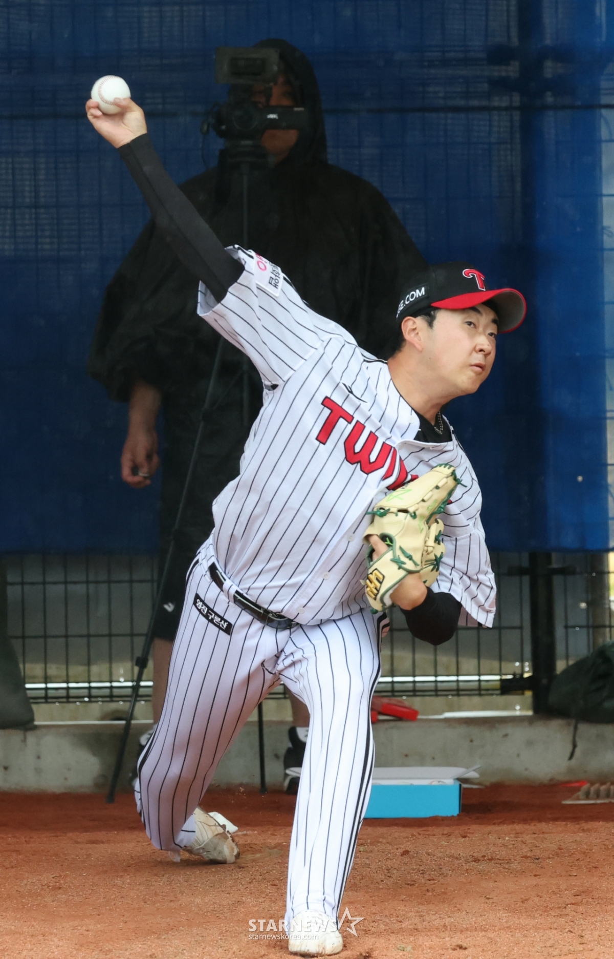 金ジンスがブルペンピッチング練習をしている。