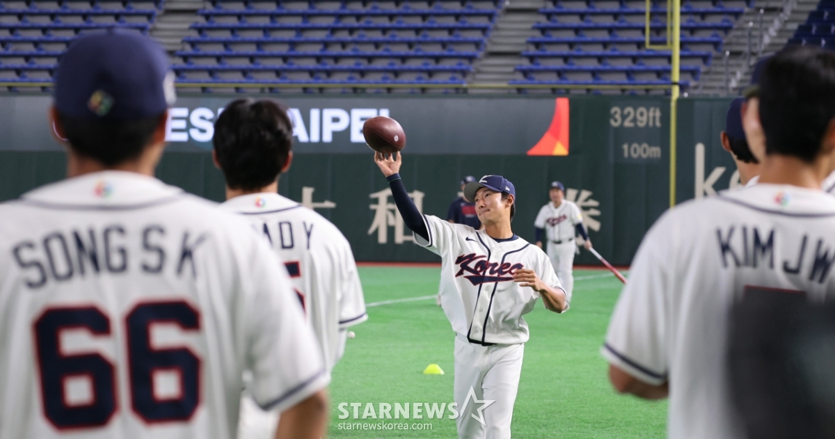 *このコンテンツはAIによって翻訳されました。野球代表チームのシン·ミンジェが2026WBC東京ラウンド開幕を翌日に控えた4日、東京ドームの公式練習を始める前にアメリカンフットボールのボールを投げている。 2026.03.04.© STARNEWS. 無断転載・再配布禁止*このコンテンツはAIによって翻訳されました。