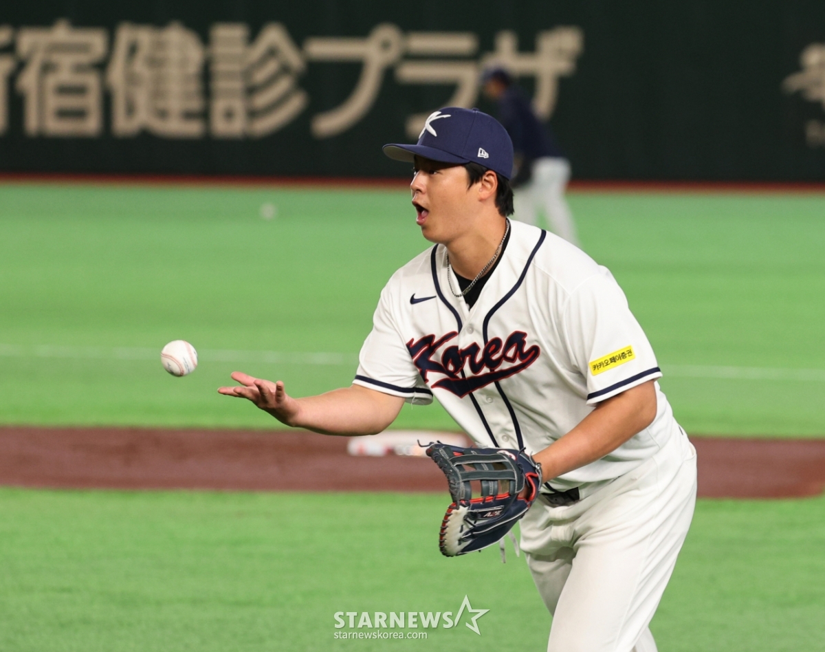 野球代表チームの内野手ノ·シファンが2026WBC東京ラウンド開幕を翌日に控えた4日、東京ドームの公式練習で内野守備練習をしている。 2026.03.04.