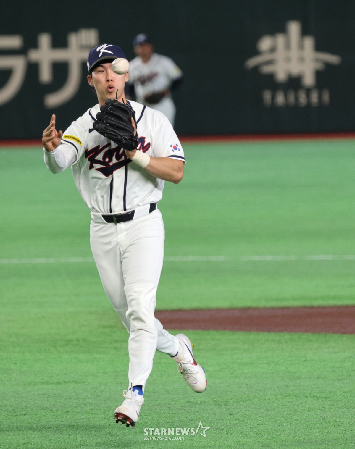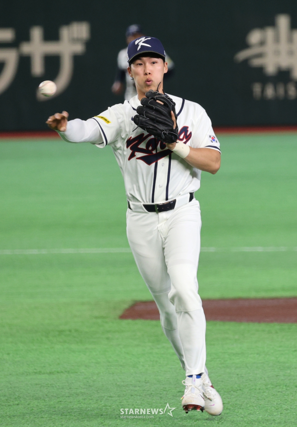 野球代表チームの金ヘソンが5日、東京ドームで行われた2026WBC東京POOL開幕2回目の試合、韓国とチェコの試合1回表1死1塁、チェコの3番バーブラ内野ゴロを取って併殺処理している。 2026.03.05.
