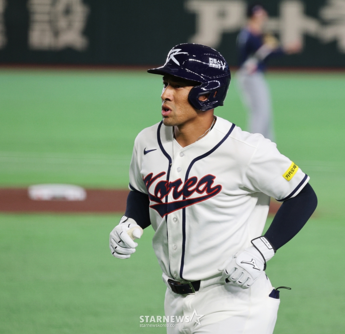 *このコンテンツはAIによって翻訳されました。野球代表チームの2番打者ジャーマイ·ジョーンズが5日、東京ドームで行われた2026WBC東京POOL開幕2回目の試合、韓国とチェコの試合1回裏無死1塁で外野フライに下がっている。 2026.03.05.© STARNEWS. 無断転載・再配布禁止*このコンテンツはAIによって翻訳されました。