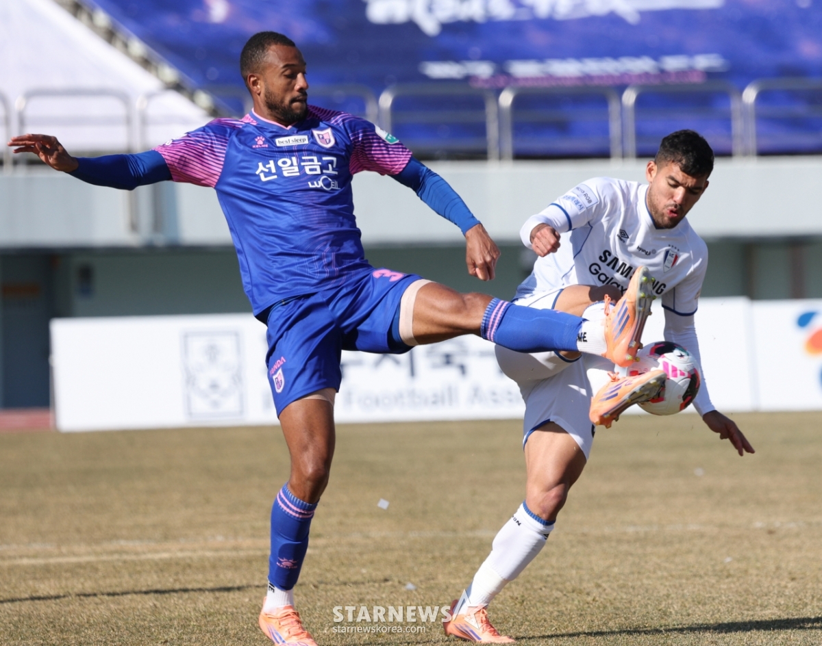 *このコンテンツはAIによって翻訳されました。ハナ銀行Kリーグ202026坡州フロンティアFC対水原三星(スウォン·サムスン)の試合が7日、京畿道坡州(キョンギド·パジュシ)スタジアムで行われた。坡州(パジュ)FCボニーラが水原三星(スウォン·サムスン)シウバとボールを争っている© STARNEWS. 無断転載・再配布禁止*このコンテンツはAIによって翻訳されました。