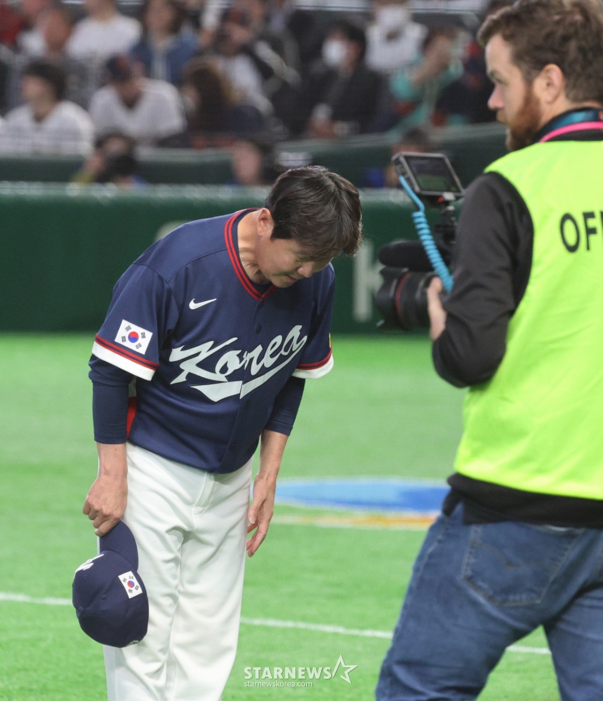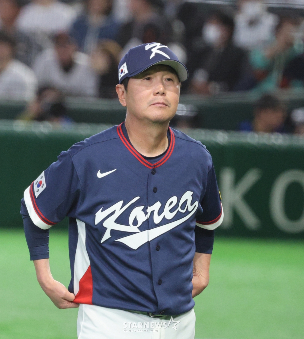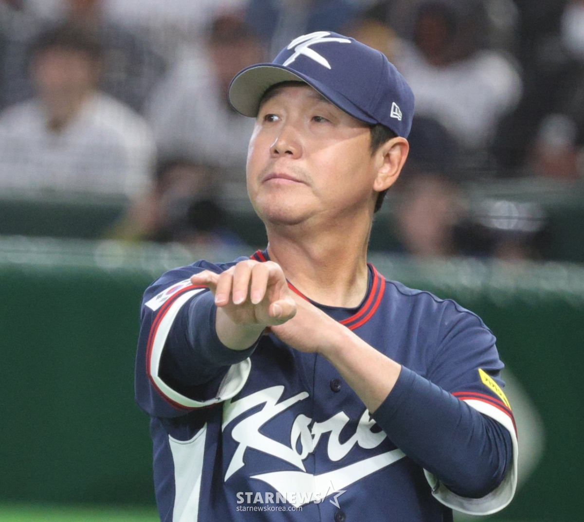 *このコンテンツはAIによって翻訳されました。リュ·ジヒョン、キム·ドクが7日、東京ドームで開かれた2026WBC東京POOL大韓民国と日本の試合オープニングセレモニーのためにグラウンドに出ている。 2026.03.05.© STARNEWS. 無断転載・再配布禁止*このコンテンツはAIによって翻訳されました。