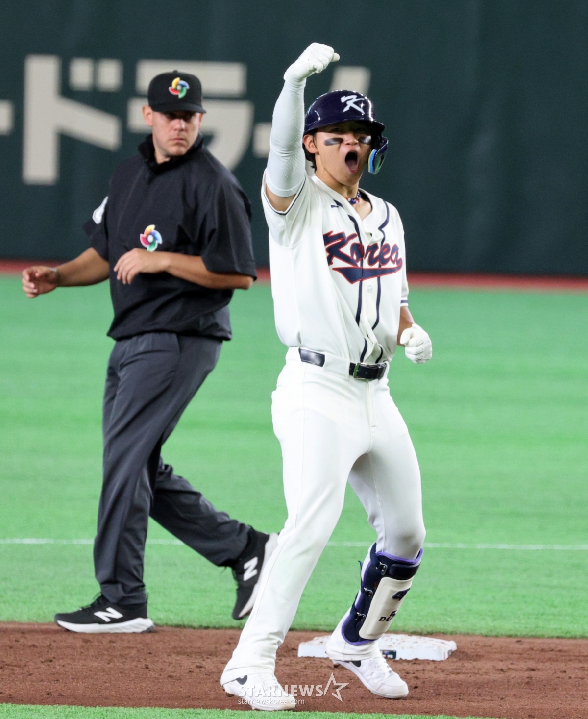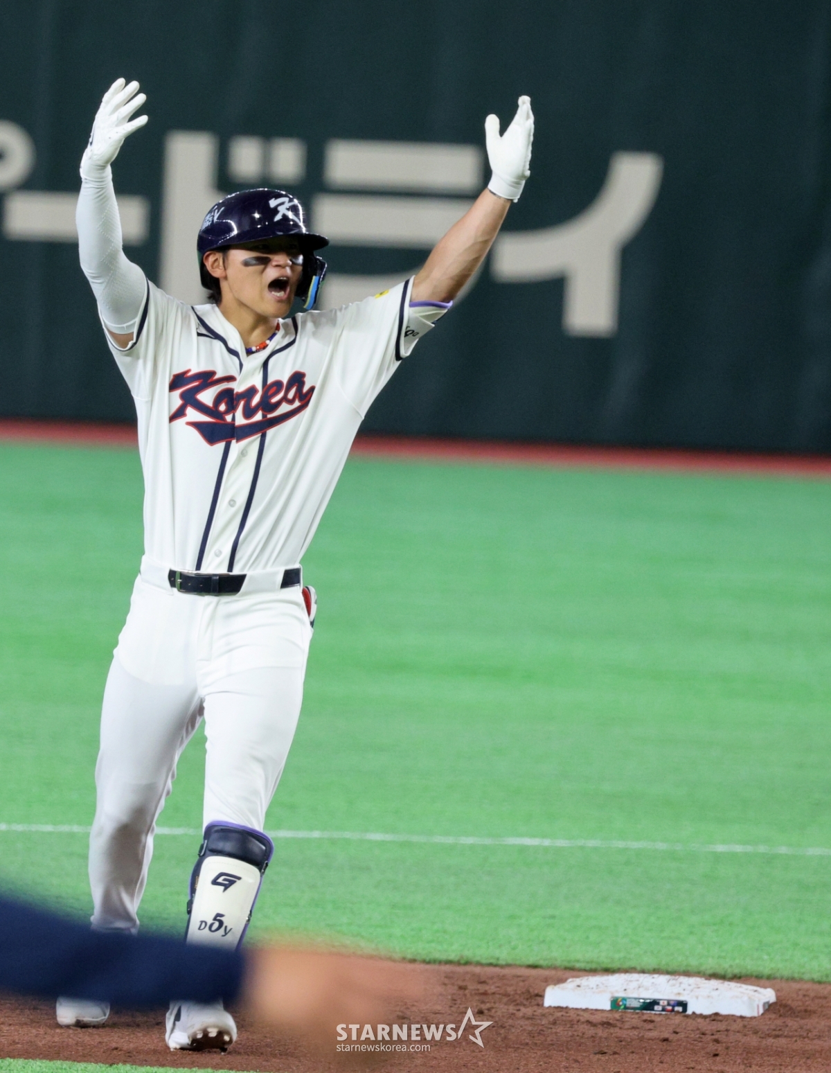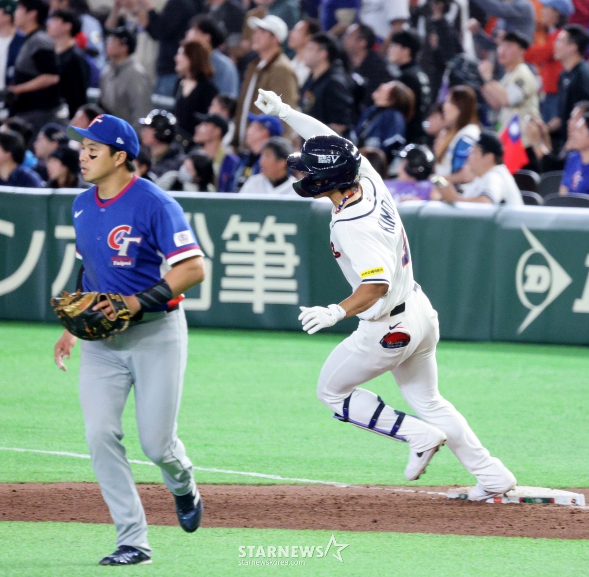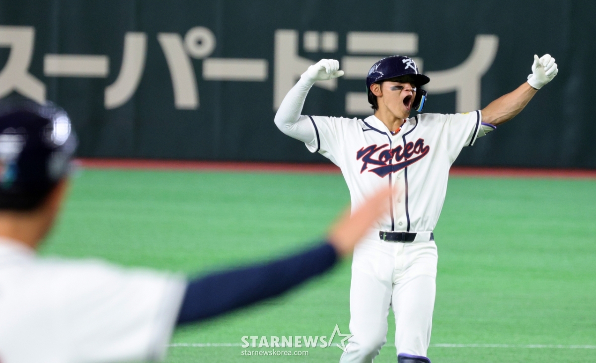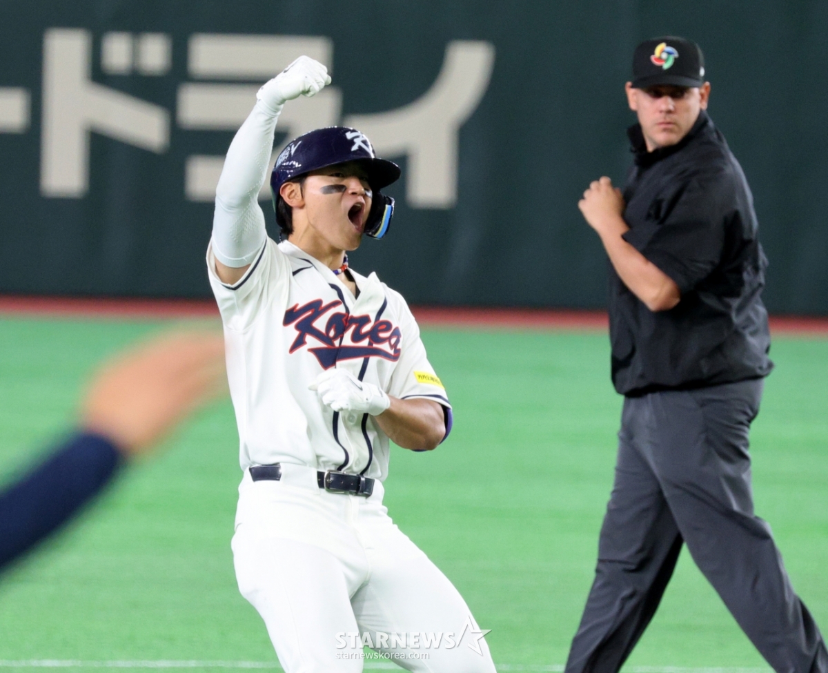 *このコンテンツはAIによって翻訳されました。韓国1番打者の金ドヨンが8日、東京ドームで行われた2026WBC東京POOL大韓民国と台湾戦の8回裏、2死1塁で同点2塁打を放った後、歓呼している。 026.03.08.© STARNEWS. 無断転載・再配布禁止*このコンテンツはAIによって翻訳されました。