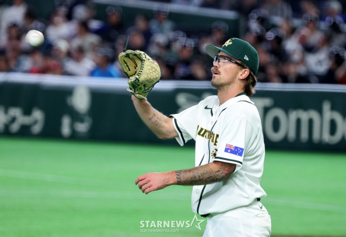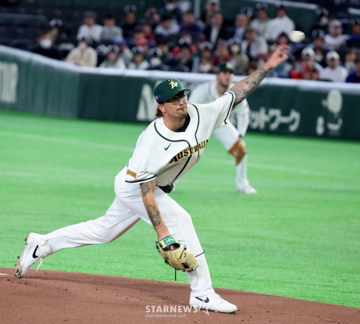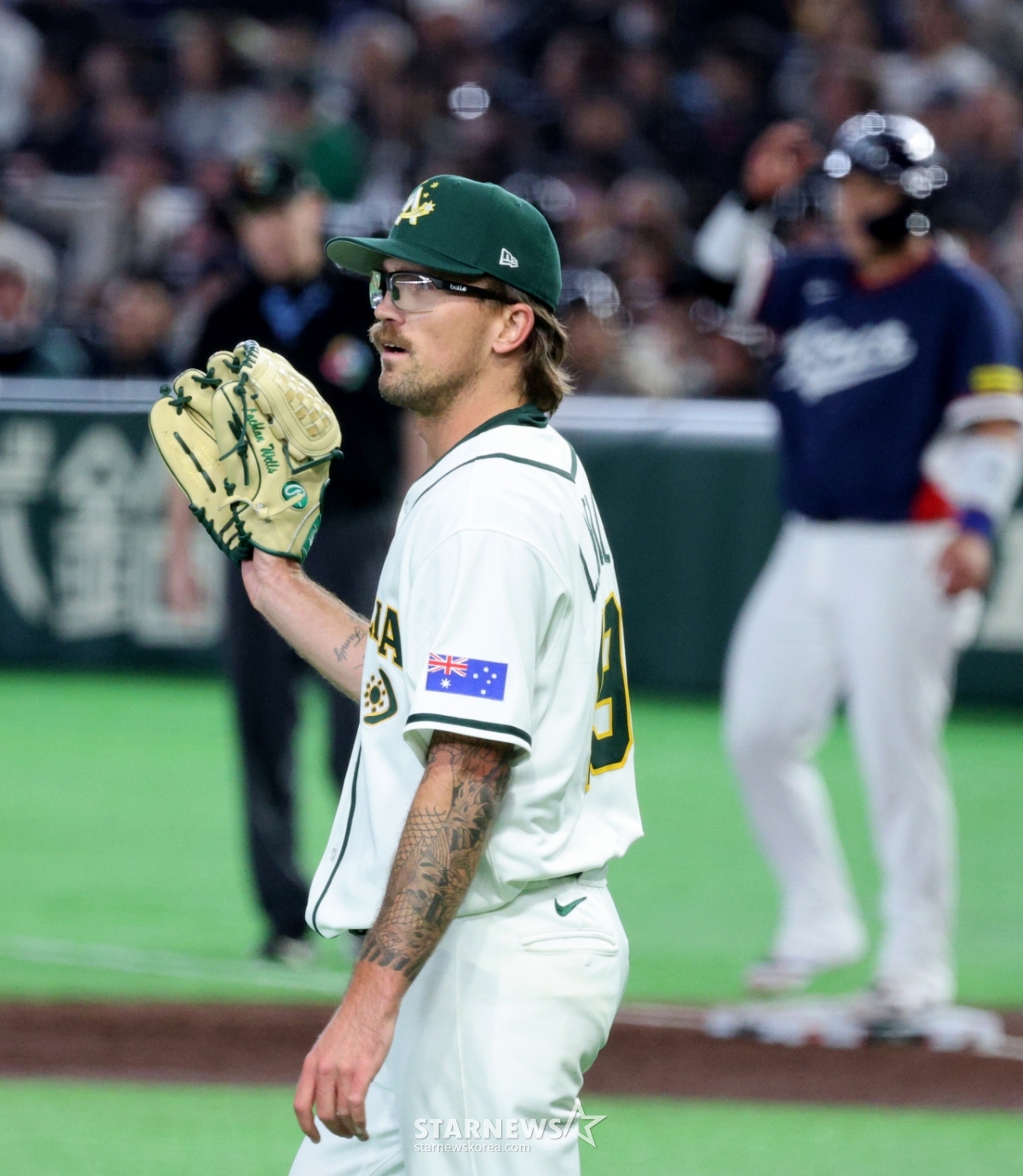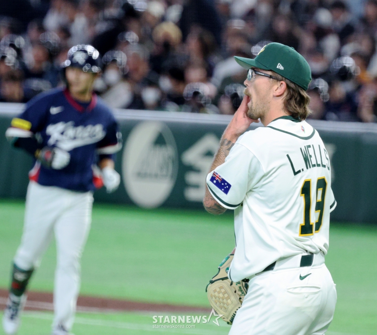 *このコンテンツはAIによって翻訳されました。豪州先発投手ウェルズが9日、東京ドームで行われた2026WBC東京POOL大韓民国と豪州試合の2回表に降板している。 026.03.08.© STARNEWS. 無断転載・再配布禁止*このコンテンツはAIによって翻訳されました。