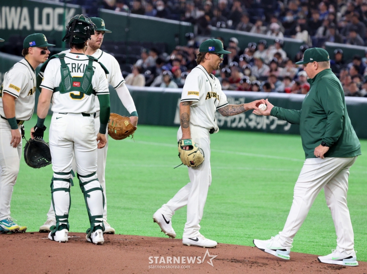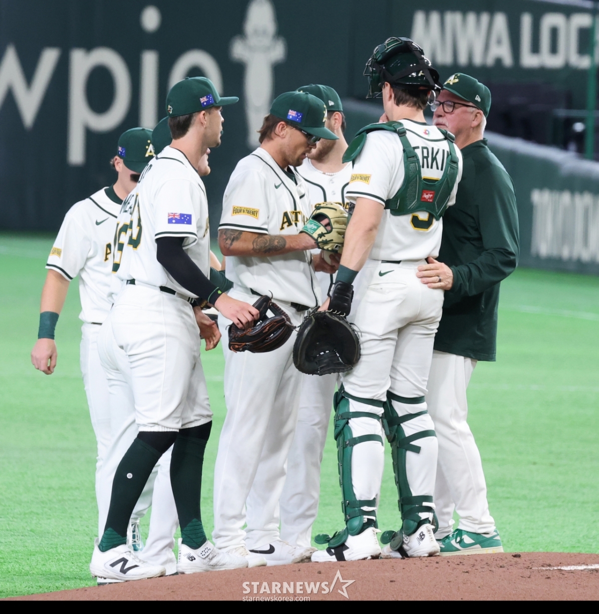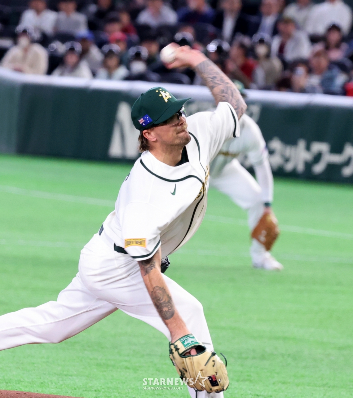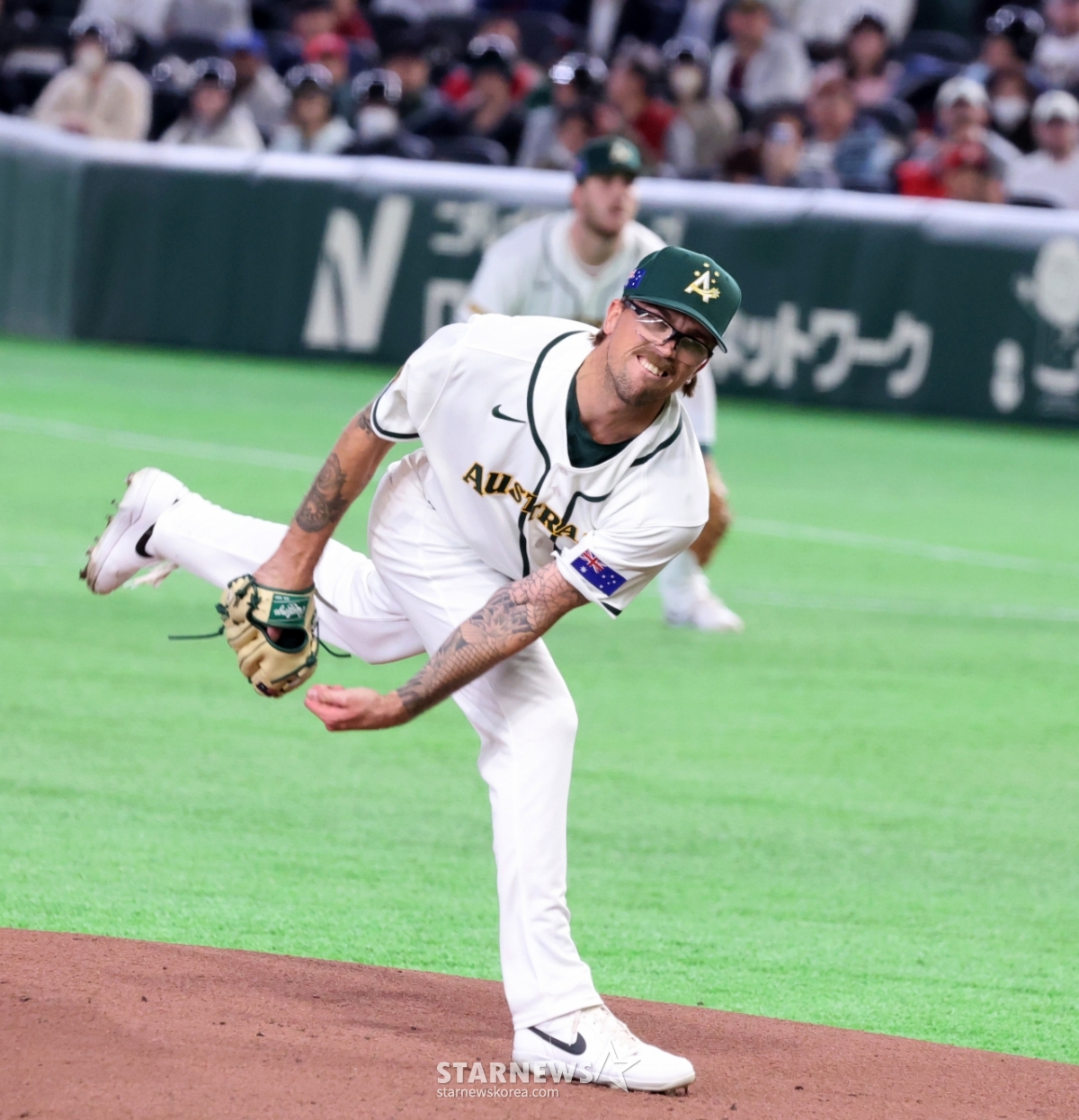 *このコンテンツはAIによって翻訳されました。豪州先発投手ウェルズが9日、東京ドームで行われた2026WBC東京POOL大韓民国と豪州試合の2回表に降板している。 026.03.08.© STARNEWS. 無断転載・再配布禁止*このコンテンツはAIによって翻訳されました。