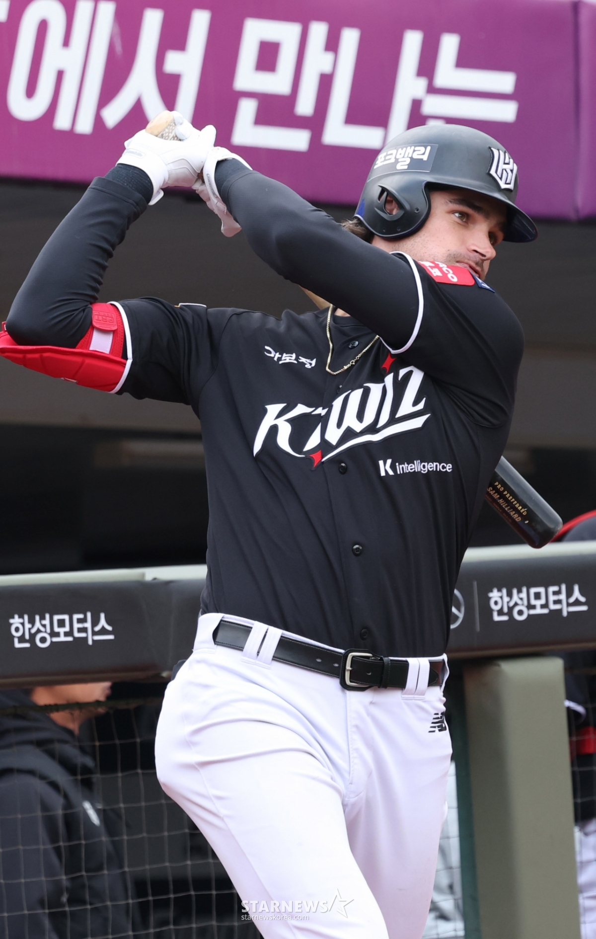*このコンテンツはAIによって翻訳されました。2026新韓(シンハン)SOLBankKBOリーグのオープン戦、ロッテジャイアンツ対KTウィズの試合が12日、釜山(プサン)社稷(サジク)野球場で行われた。KTヒリアードが打席に入る前にスイングをしている。© STARNEWS. 無断転載・再配布禁止*このコンテンツはAIによって翻訳されました。