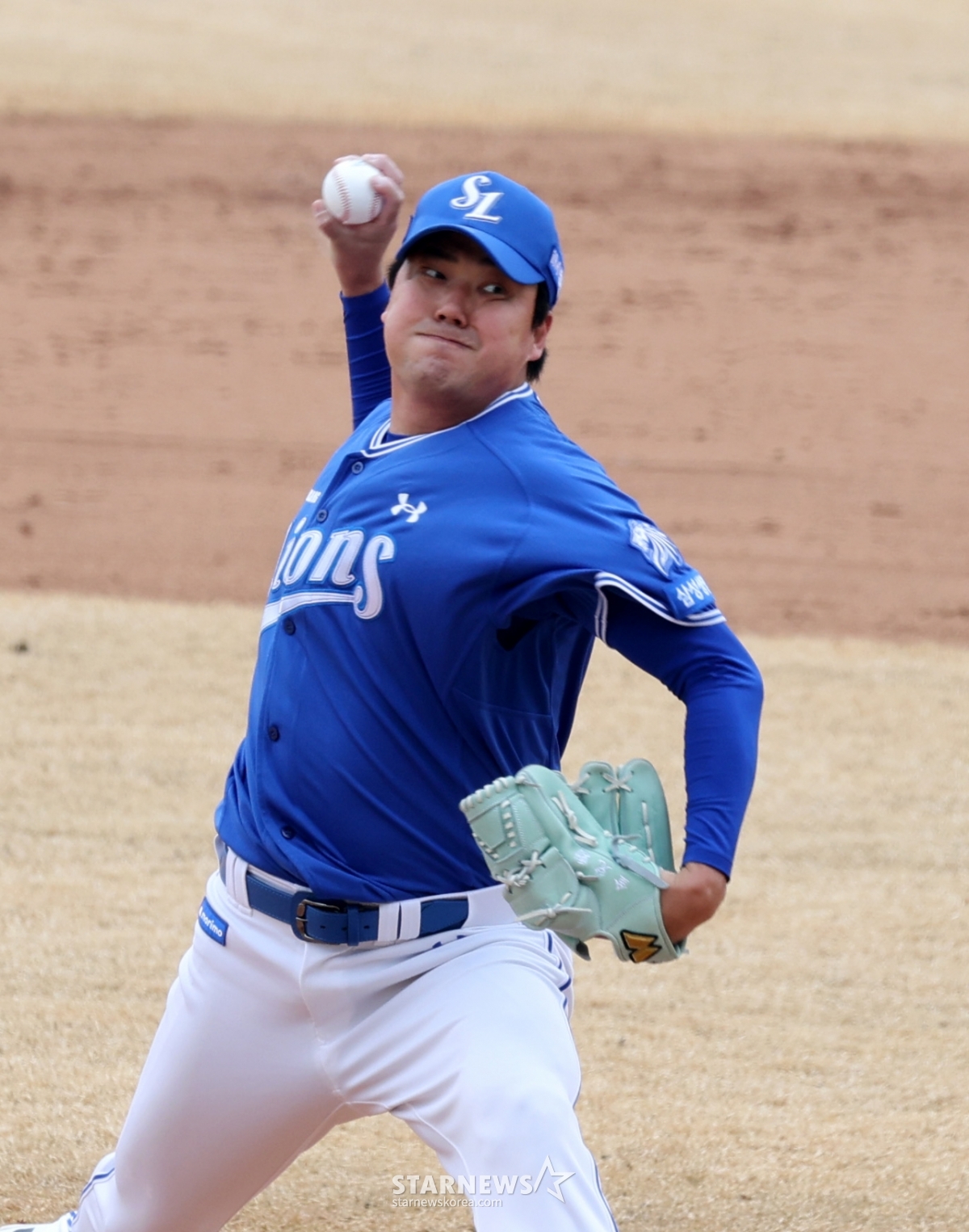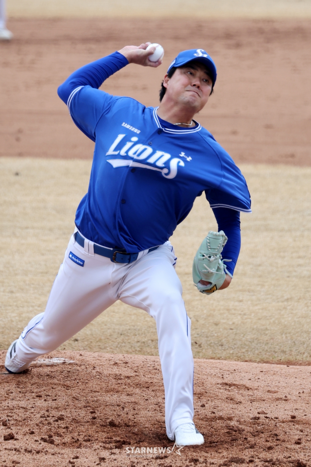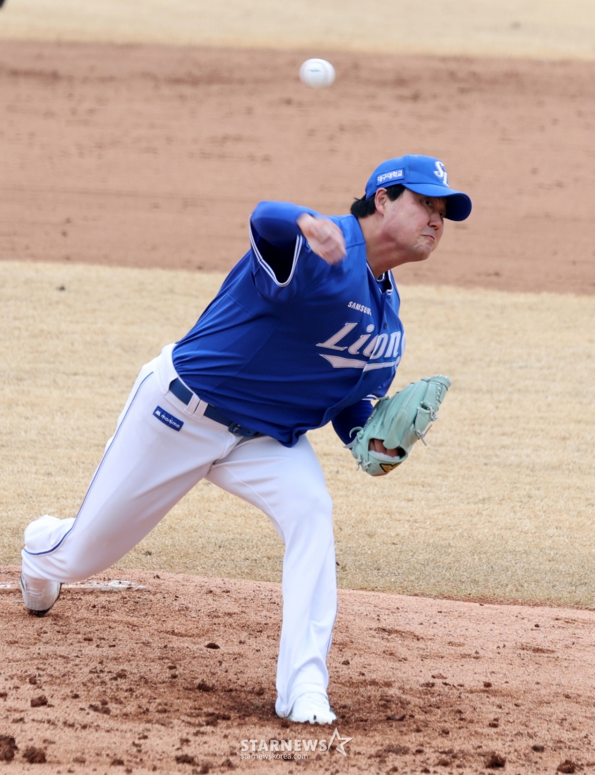 三星(サムスン)の右腕ブルペンの金テフンが15日、利川(イチョン)斗山(トゥサン)ベアーズパークで行われた2026プロ野球オープン戦の斗山ベアーズと三星ライオンズの4回裏に登板している。 2026.03.15.