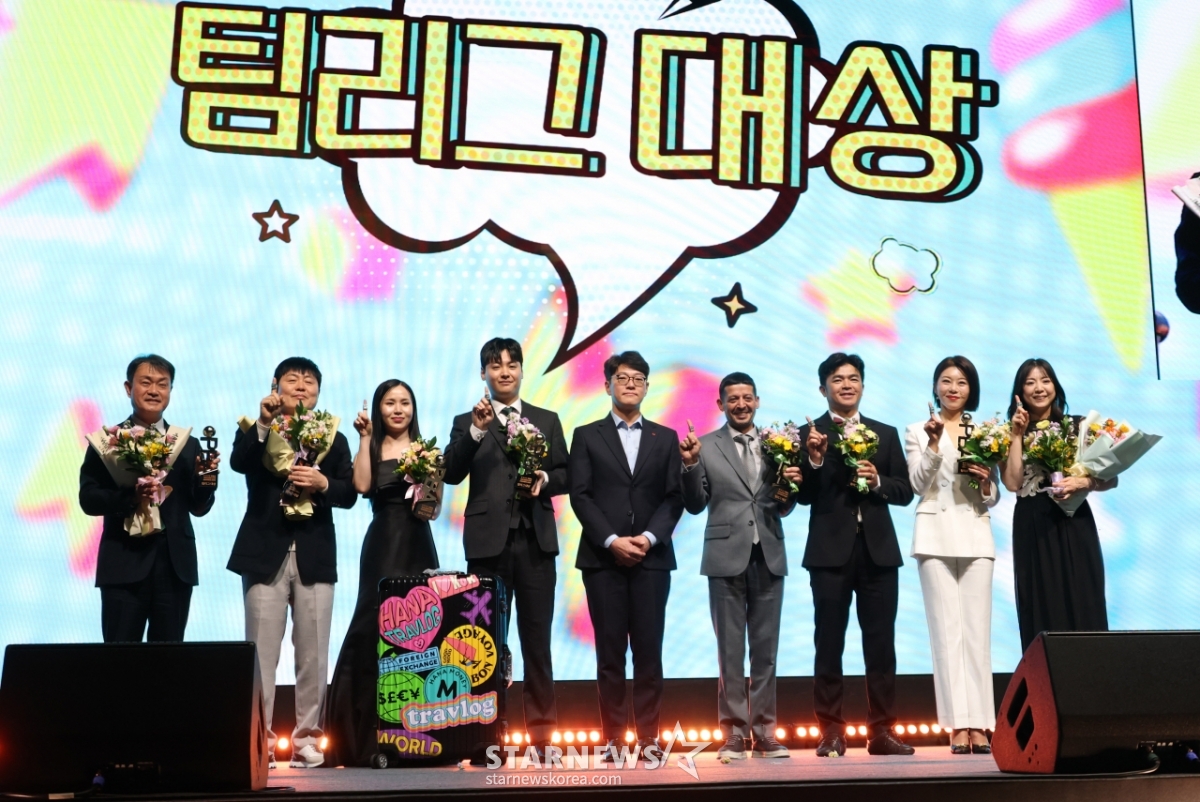 *このコンテンツはAIによって翻訳されました。「ハナカードPBAゴールデンキューアワード2026」が17日、ソウル広津区グランドウォーカーヒルソウルビスタホールで開かれた。キム·ガヨンをまっすぐにしたハナカード選手団がチームリーグ大賞の後、ポーズを取っている。© STARNEWS. 無断転載・再配布禁止*このコンテンツはAIによって翻訳されました。