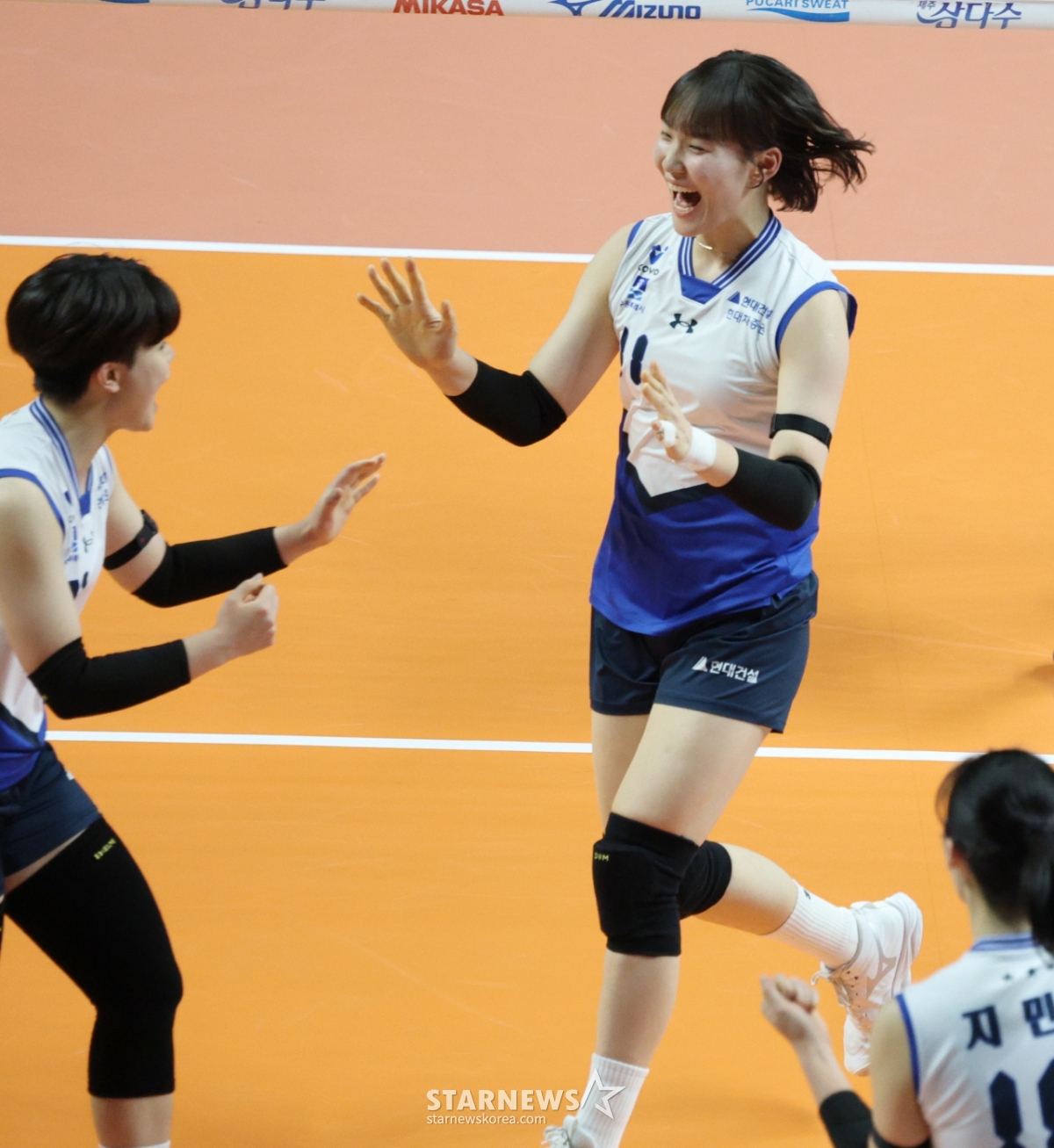 *このコンテンツはAIによって翻訳されました。2025-2026シーズンVリーグ女子部GSカルテックス対現代(ヒョンデ)建設の試合が18日、ソウル奨忠(チャンチュン)体育館で行われた。現代建設のカン·ソウがブロッキング得点をした後、歓呼している。© STARNEWS. 無断転載・再配布禁止*このコンテンツはAIによって翻訳されました。