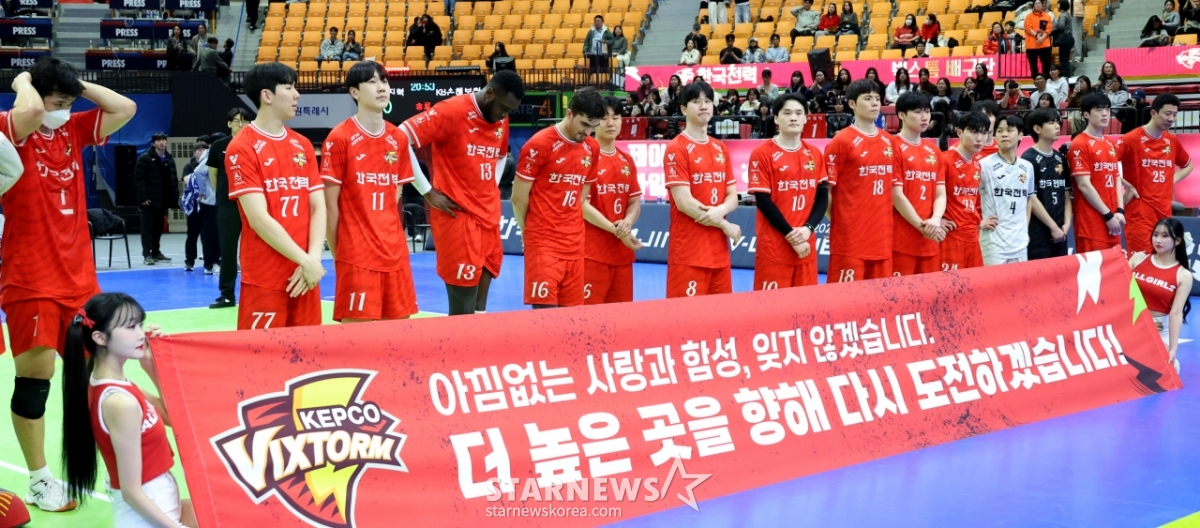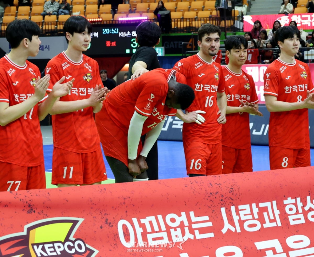 *このコンテンツはAIによって翻訳されました。KBが18日、水原体育館で開かれた2025-2026Vリーグの韓国電力とKB損害保険の最終戦で、セットスコア3-0で勝利し、春のバレーボールに乗船した。 韓国電力の選手たちが悔しさをかみしめながらファンに挨拶をしている。 2026.03.18.© STARNEWS. 無断転載・再配布禁止*このコンテンツはAIによって翻訳されました。