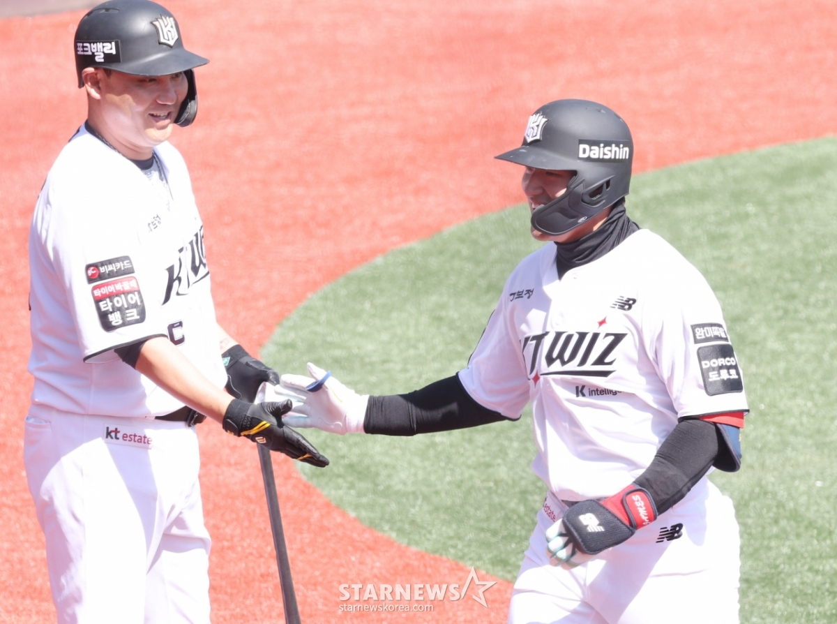 *このコンテンツはAIによって翻訳されました。2026新韓(シンハン)SOLBankKBOリーグのオープン戦「KTウィズ対キウムヒーローズ」の試合が19日、水原(スウォン)のKTウィズパークで行われた。KTのアン·ヒョンミンが1回裏、2社でキウム先発のキム·ユンハを相手に先制左越1点本塁打を放ち、ホームインしている。© STARNEWS. 無断転載・再配布禁止*このコンテンツはAIによって翻訳されました。