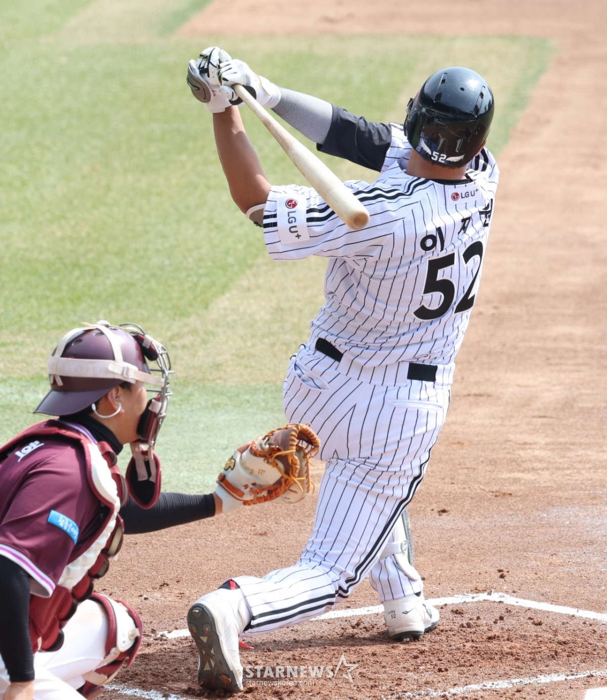 *このコンテンツはAIによって翻訳されました。2026新韓(シンハン)SOLBankKBOリーグオープン戦「LGツインズ対キウムヒーローズ」の試合が23日、ソウル蚕室(チャムシル)野球場で行われた。LGの李ジェウォンが豪快な打撃をしている。© STARNEWS. 無断転載・再配布禁止*このコンテンツはAIによって翻訳されました。