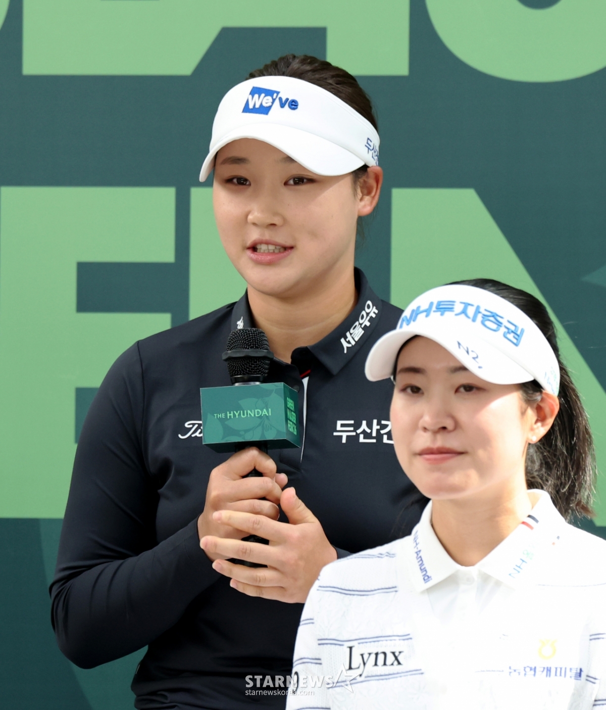 2026シーズンKLPGAオープニングセレモニーが25日、汝矣島(ヨイド)のザ·現代(ヒョンデ)ソウルサウンズフォレストで行われた。 KLPGAを代表する12人の選手たち(キム·ミンソル、パク·ギョル、パク·ミンジ、パク·ヒョンギョン、パク·ヘジュン、ペ·ソヒョン、ユ·ヒョンジョ、イ·ガヨン、李世熙(イ·セヒ)、李裕麟(イ·ユリン)、林熙正(イム·ヒジョン)、洪正敏)が広報モデルとして参加して記者質問に答えている。 選手たちが選んだ2026KLPGA大賞候補のキム·ミンソルが質問に答えている。 .2026.03.25.