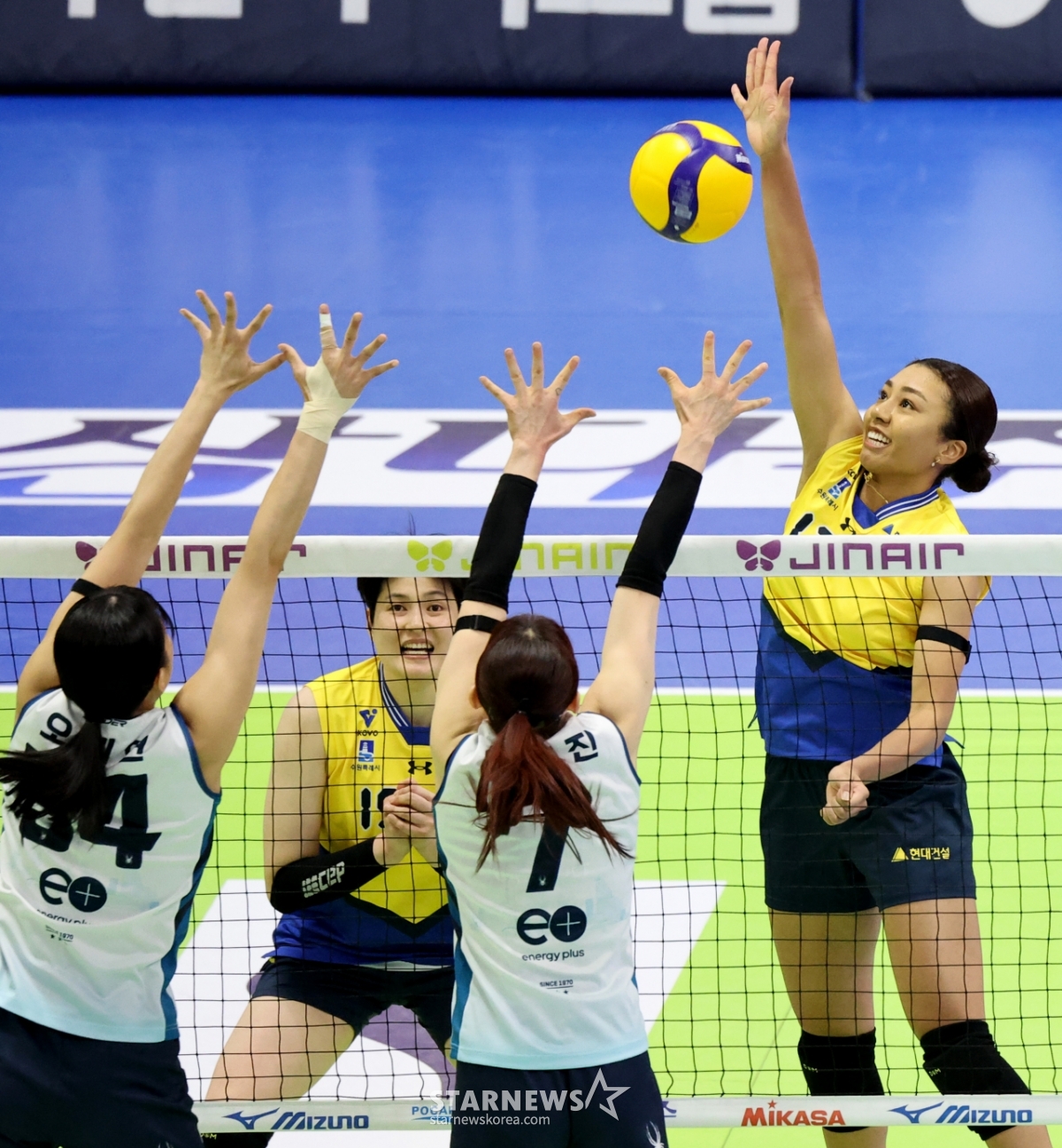 *このコンテンツはAIによって翻訳されました。現代ジャスティスが26日、中水原体育館で開かれた2025-2026ジンエアーVリーグの現代建設とGSケルテックスプレーオフで、GS二重ブロッキングに連打を試みている。 .2026.03.26.© STARNEWS. 無断転載・再配布禁止*このコンテンツはAIによって翻訳されました。