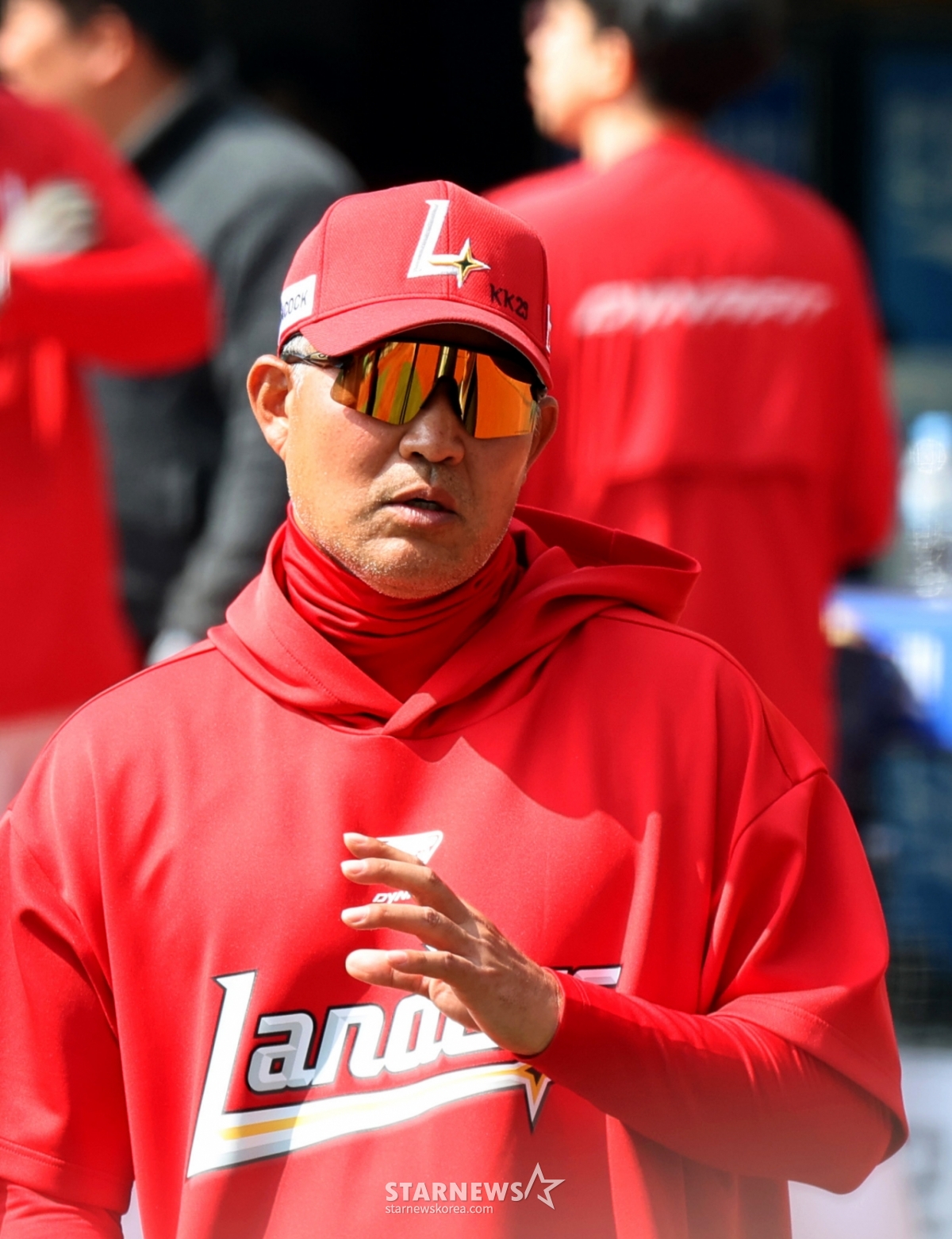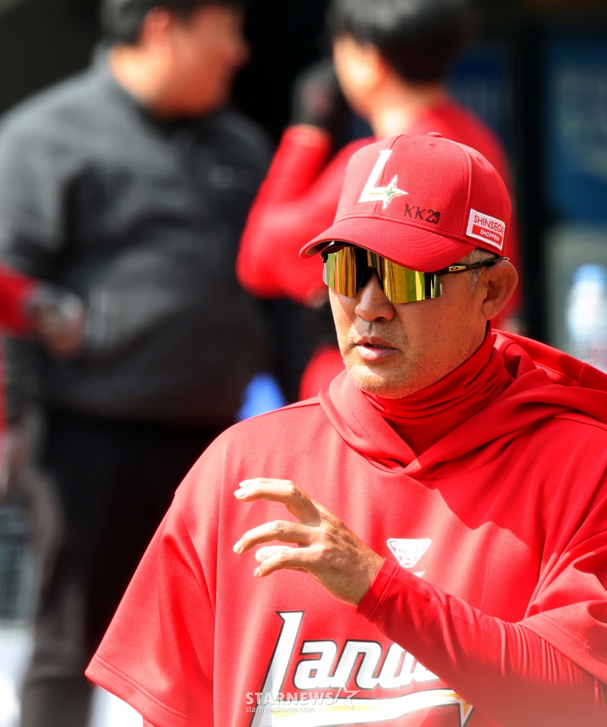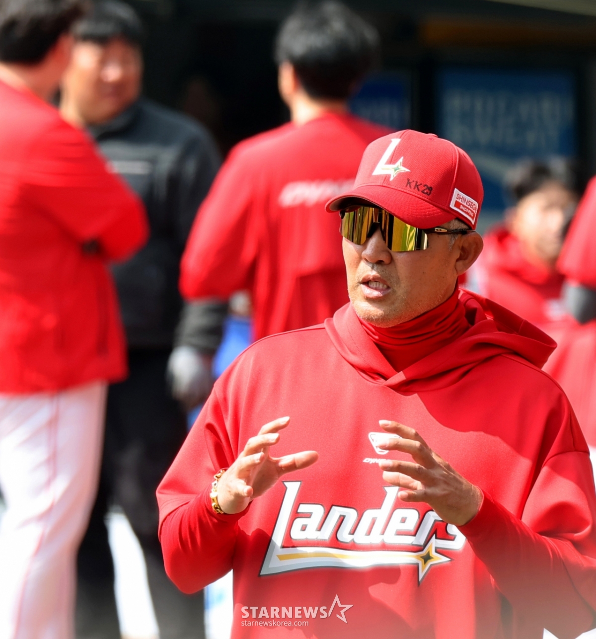 *このコンテンツはAIによって翻訳されました。SSGランダースの李スンヨン監督が28日、仁川(インチョン)SSGランダースフィールドで行われる2026プロ野球SSGランダースとKIAタイガースの開幕試合を控え、グラウンドで解説委員たちと話を交わしている。 2026.03.28.© STARNEWS. 無断転載・再配布禁止*このコンテンツはAIによって翻訳されました。
