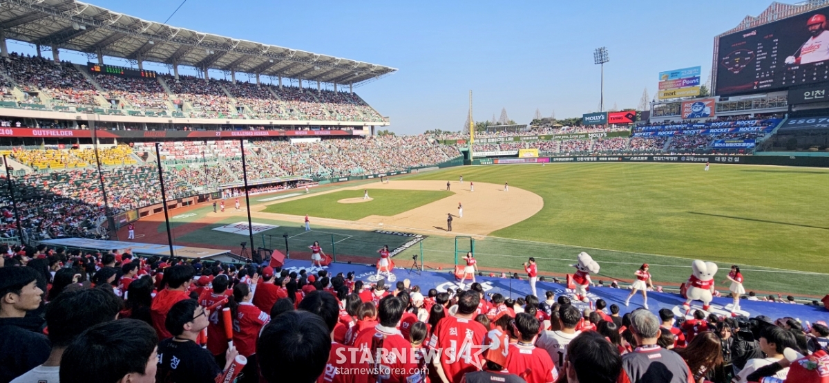 *このコンテンツはAIによって翻訳されました。28日、仁川(インチョン)SSGランダースフィールドで行われる2026プロ野球SSGランダースとKIAタイガースの開幕試合に満員の観衆が訪れ、昼に行われる開幕戦を楽しんでいる。 2026.03.28.© STARNEWS. 無断転載・再配布禁止*このコンテンツはAIによって翻訳されました。