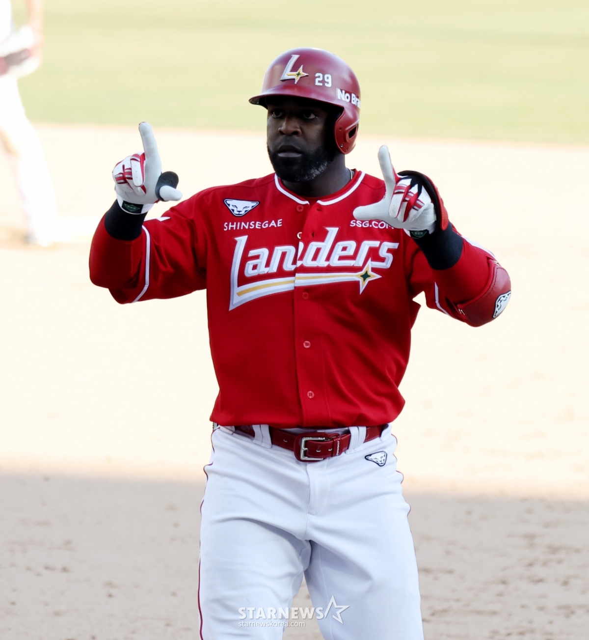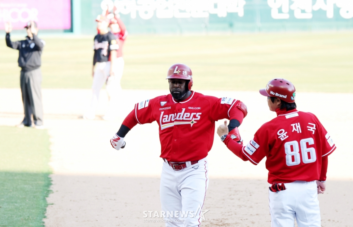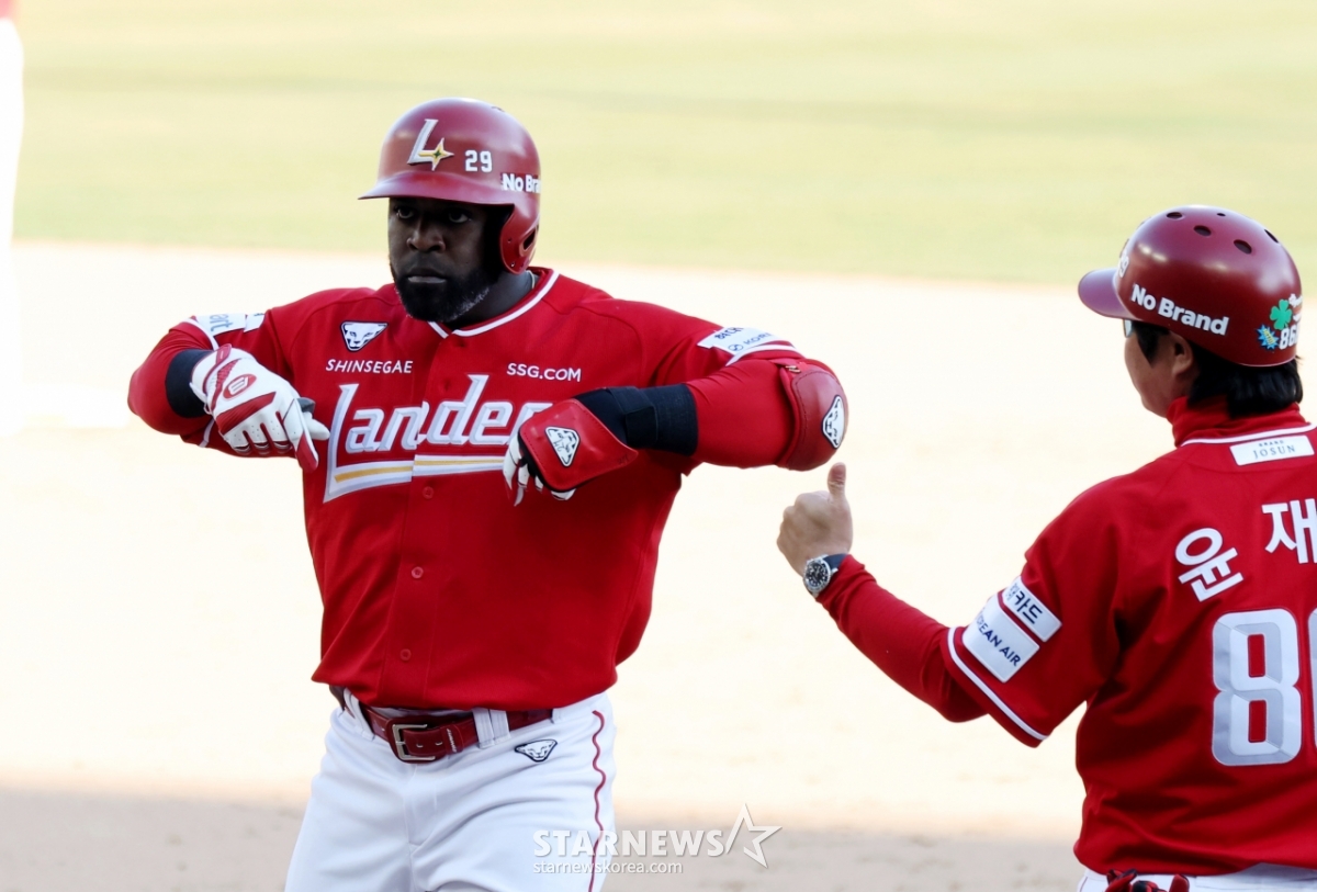 *このコンテンツはAIによって翻訳されました。レンダース·エレディアが28日、仁川(インチョン)SSGランダースフィールドで行われる2026プロ野球SSGランダースとKIAタイガースの開幕試合9回裏、1死1、2塁で1打点のタイムリーヒットを放った後、歓呼している.. 2026.03.28.© STARNEWS. 無断転載・再配布禁止*このコンテンツはAIによって翻訳されました。
