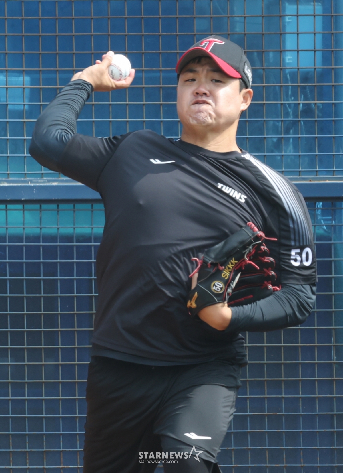 *このコンテンツはAIによって翻訳されました。2026新韓(シンハン)SOLBankKBOリーグLGツインズ対KTウィズの試合が29日、ソウル蚕室(チャムシル)野球場で行われた。LGのチャン·ヒョンシクがブルペンピッチングをしている。© STARNEWS. 無断転載・再配布禁止*このコンテンツはAIによって翻訳されました。