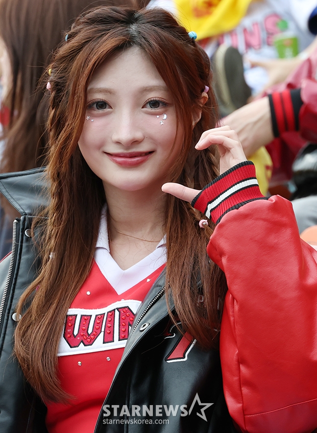 LGチアリーダーのチャン·ヨナがさわやかな応援をしている。