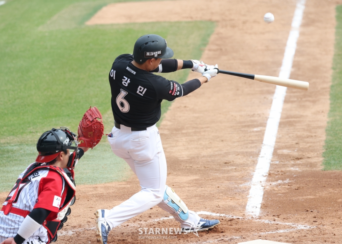 *このコンテンツはAIによって翻訳されました。2026新韓(シンハン)SOLBankKBOリーグLGツインズ対KTウィズの試合が29日、ソウル蚕室(チャムシル)野球場で行われた。KTのイ·ガンミンが豪快な打撃を披露している。© STARNEWS. 無断転載・再配布禁止*このコンテンツはAIによって翻訳されました。