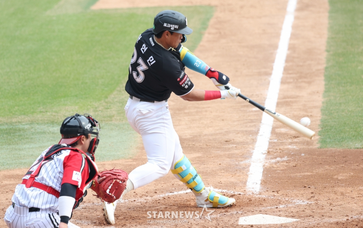 *このコンテンツはAIによって翻訳されました。2026新韓(シンハン)SOLBankKBOリーグLGツインズ対KTウィズの試合が29日、ソウル蚕室(チャムシル)野球場で行われた。KTのアン·ヒョンミンが豪快な打撃をしている。© STARNEWS. 無断転載・再配布禁止*このコンテンツはAIによって翻訳されました。