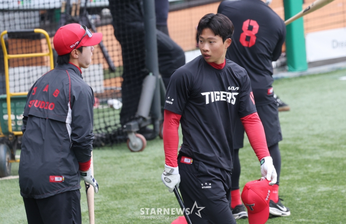 KIAの朴ジェヒョンが打撃練習をしている。