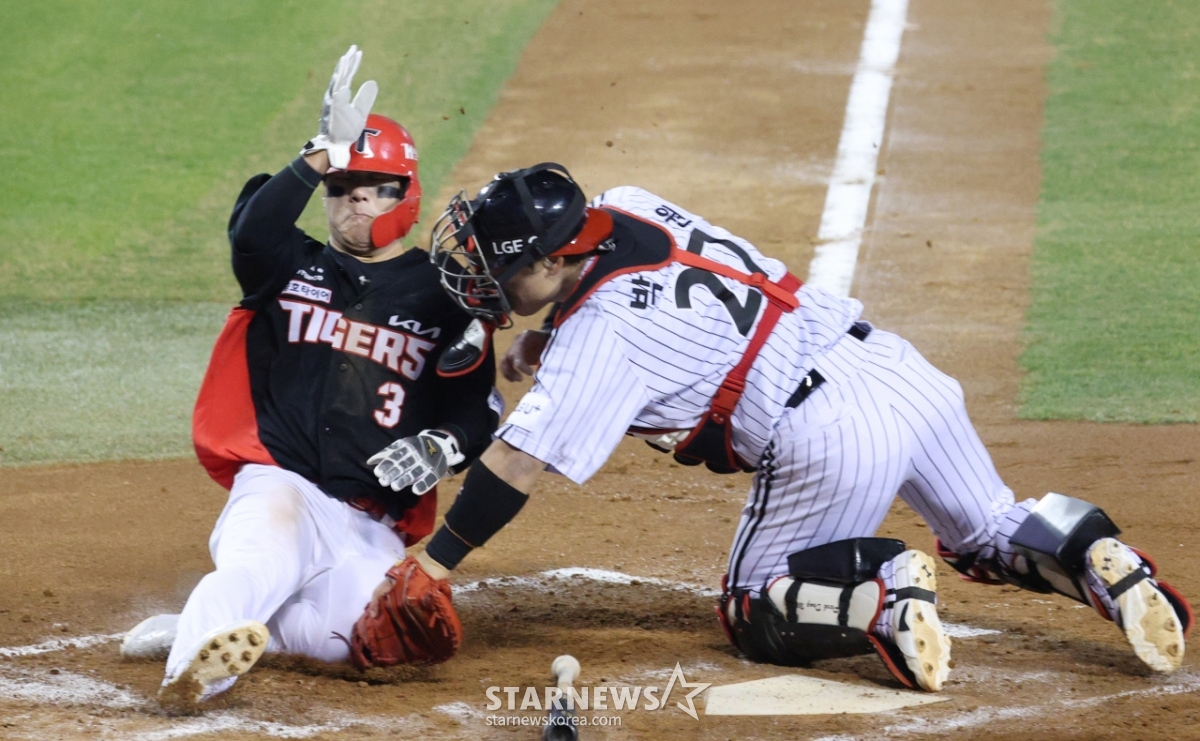*このコンテンツはAIによって翻訳されました。2026新韓(シンハン)SOLKBOリーグ、LGツインズ対KIAタイガースの試合が2日、ソウル蚕室(チャムシル)野球場で行われた。KIAの4回表、1死3塁で3塁走者の金ソンビンがデールの内野ゴロの時、ホームに突っ込んだが、LG捕手の朴ドンウォンにタグアウトされている。© STARNEWS. 無断転載・再配布禁止*このコンテンツはAIによって翻訳されました。