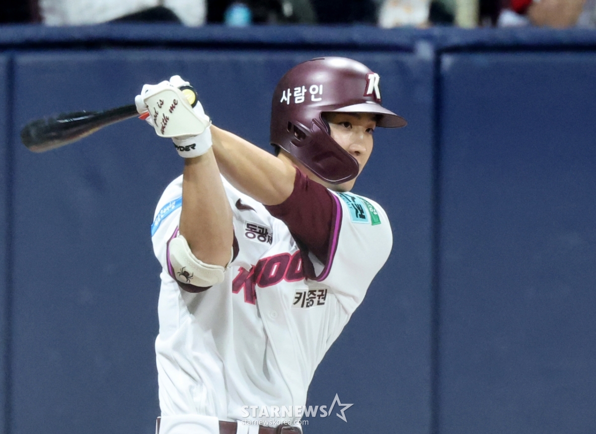 *このコンテンツはAIによって翻訳されました。キウム2番打者のイ·ジュヒョンが4日、与尺スカイドームで開かれた2026KBOリーグのキウムヒーローズとLGツインズの試合3回裏、無死2、3塁で1打点適時打で出塁している。 202604.03.© STARNEWS. 無断転載・再配布禁止*このコンテンツはAIによって翻訳されました。