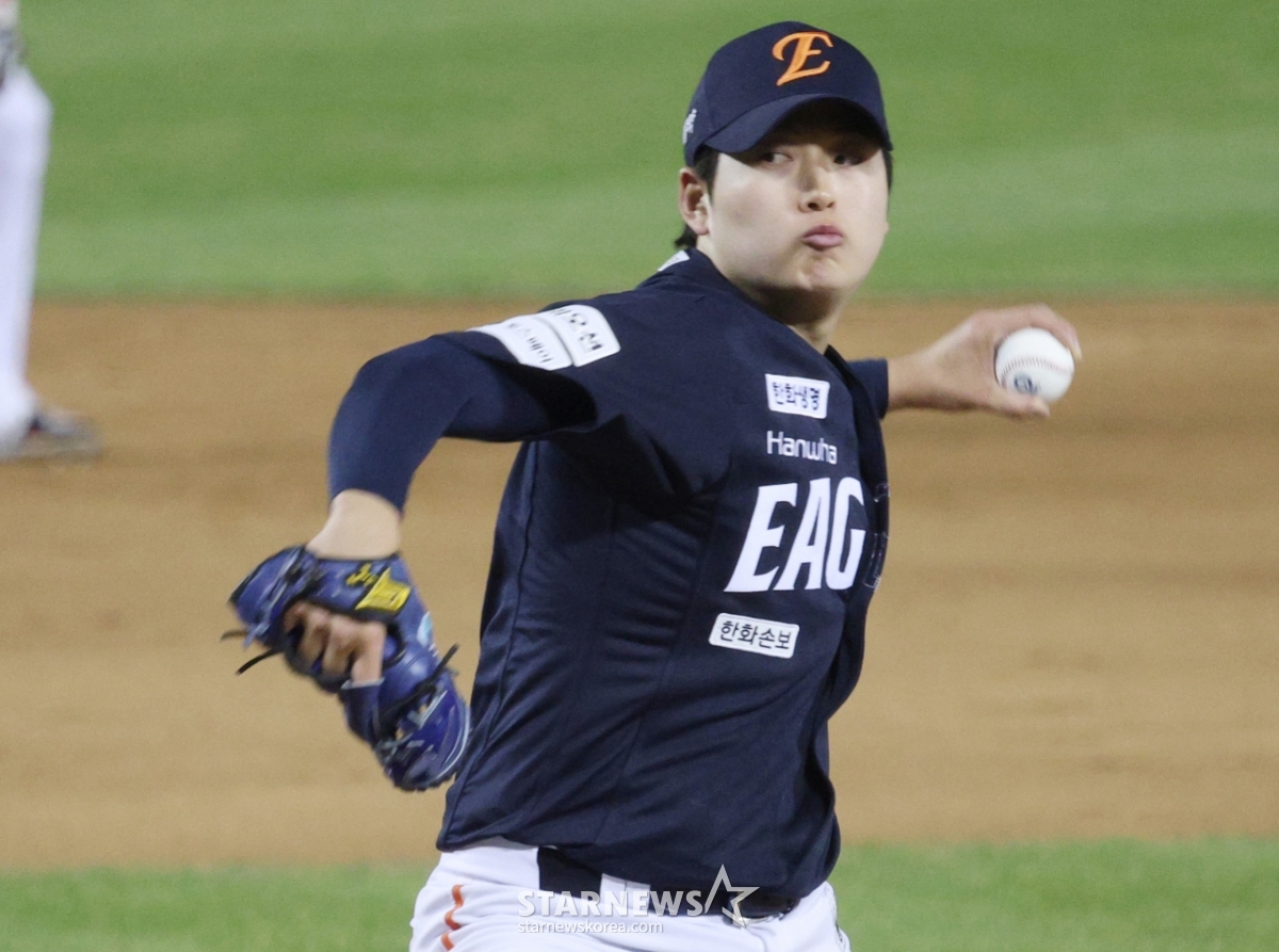 *このコンテンツはAIによって翻訳されました。2026新韓(シンハン)SOLKBOリーグの斗山(トゥサン)ベアーズ対ハンファ·イーグルスの試合が3日、ソウル蚕室(チャムシル)野球場で行われた。ハンファの趙東旭(チョ·ドンウク)が力投している。© STARNEWS. 無断転載・再配布禁止*このコンテンツはAIによって翻訳されました。