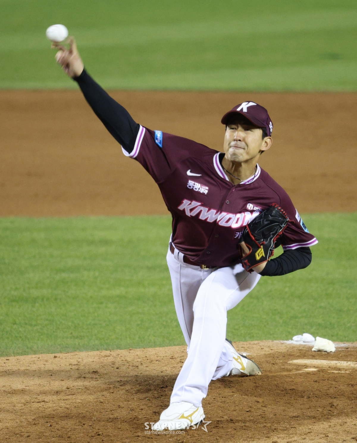 *このコンテンツはAIによって翻訳されました。2026新韓(シンハン)SOLKBOリーグの斗山(トゥサン)ベアーズ対キウムヒーローズの試合が7日、ソウル蚕室(チャムシル)野球場で行われた。キウムのユウトが6回裏に救援登板、力投している。© STARNEWS. 無断転載・再配布禁止*このコンテンツはAIによって翻訳されました。