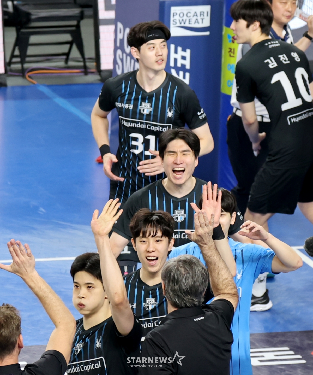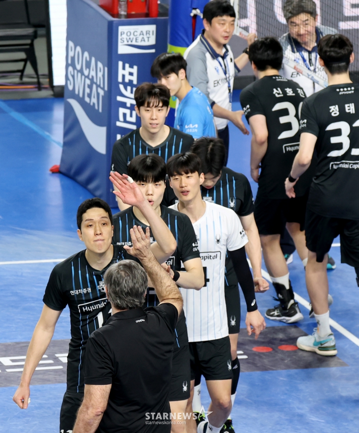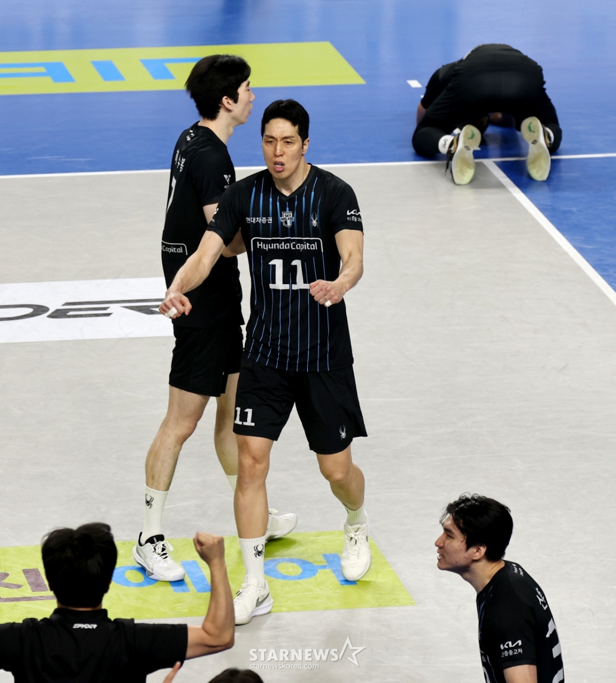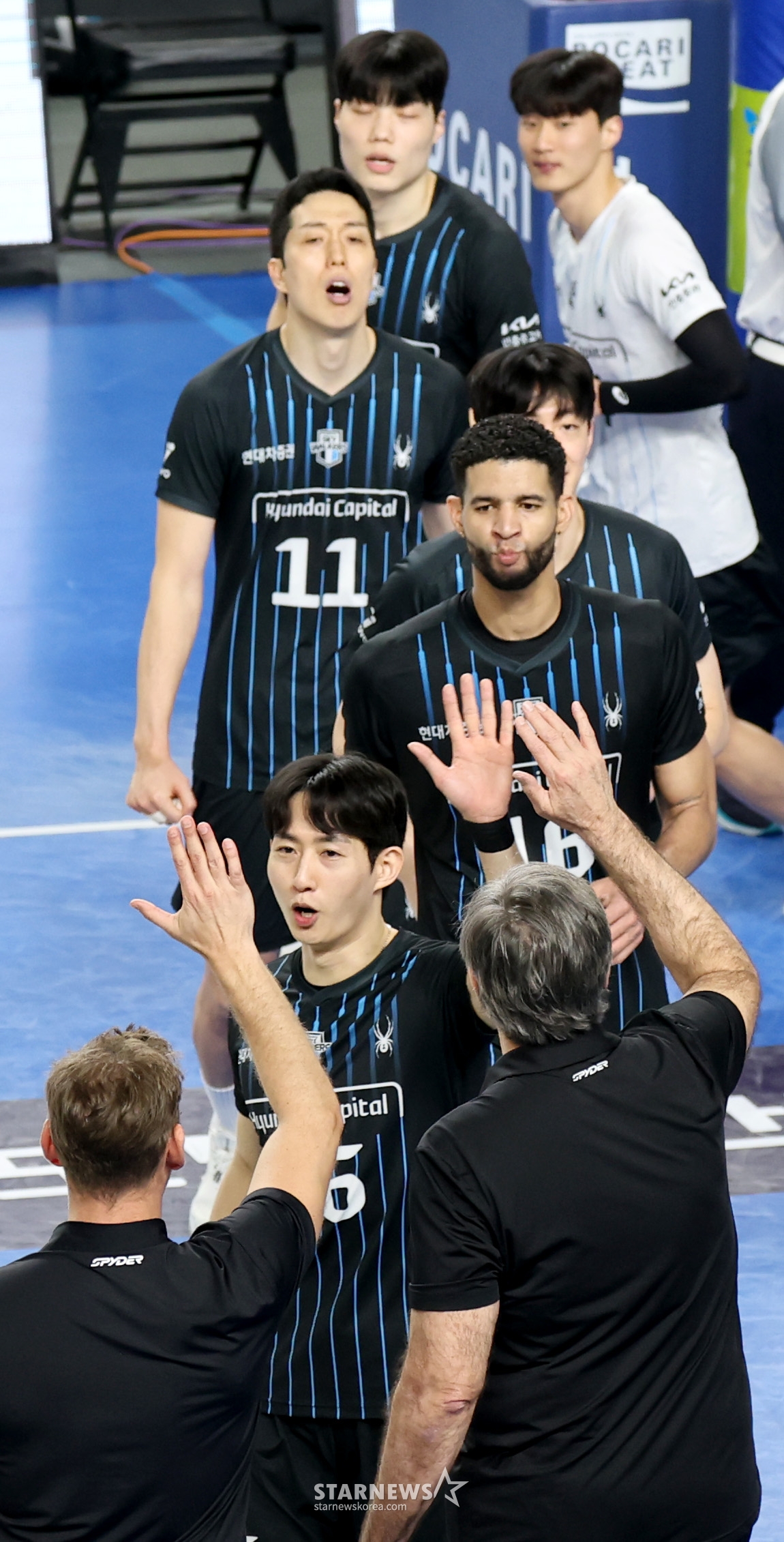 現代(ヒョンデ)レオが8日、天安(チョンアン)の柳寛順(ユ·グァンスン)体育館で行われたジンエアー2025-2026Vリーグチャンピオン決定戦の大韓航空と現代キャピタル第4戦の3セットマッチポイントを獲得している。 2026.04.08.