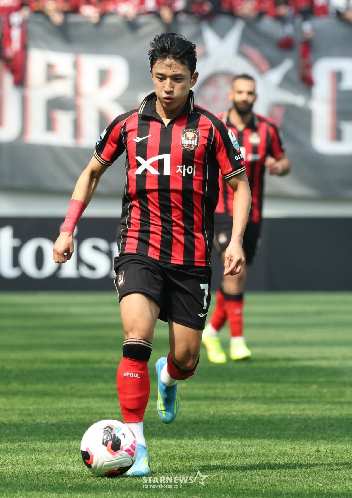 FCソウルのチョン·スンウォンが中央突破をしている。