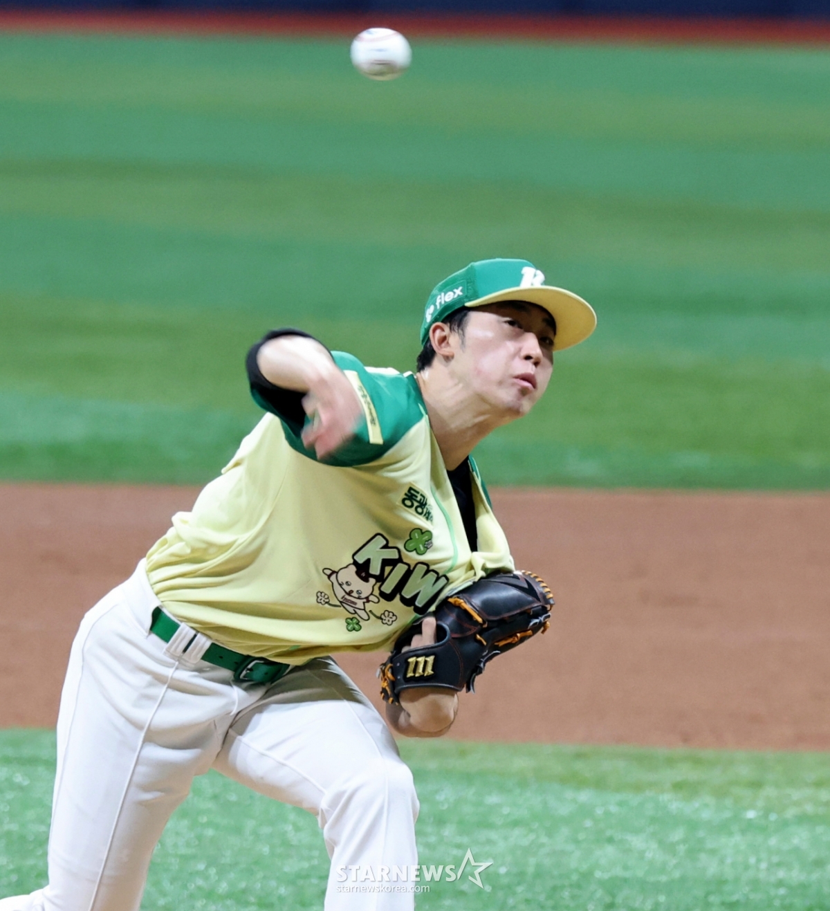 キウム右腕投手のペ·ドンヒョンが12日、高尺スカイドームで開かれた2026KBOリーグロッテジャイアンツとキウムヒーローズの試合2回表、アン·ウジンに続いて登板している.. 2026.04.12.