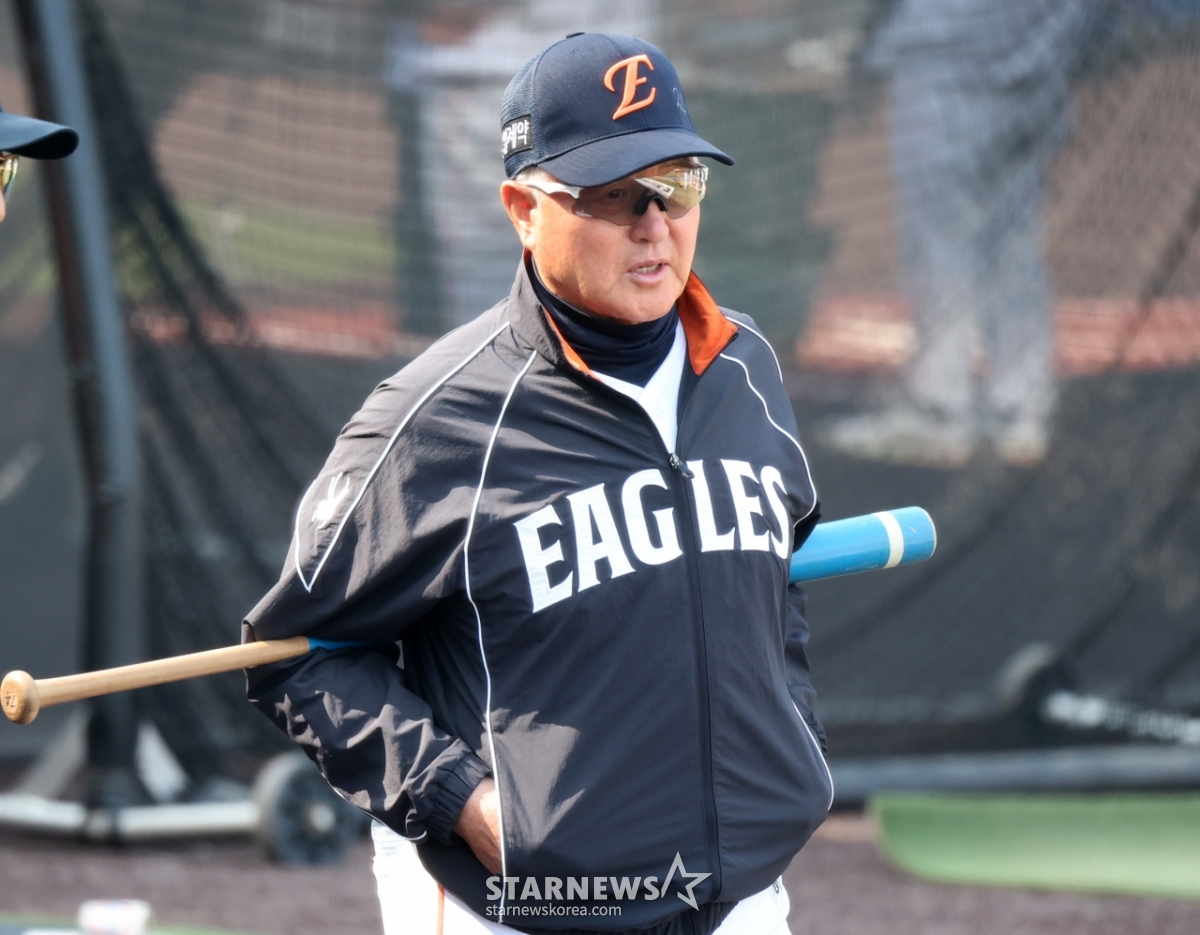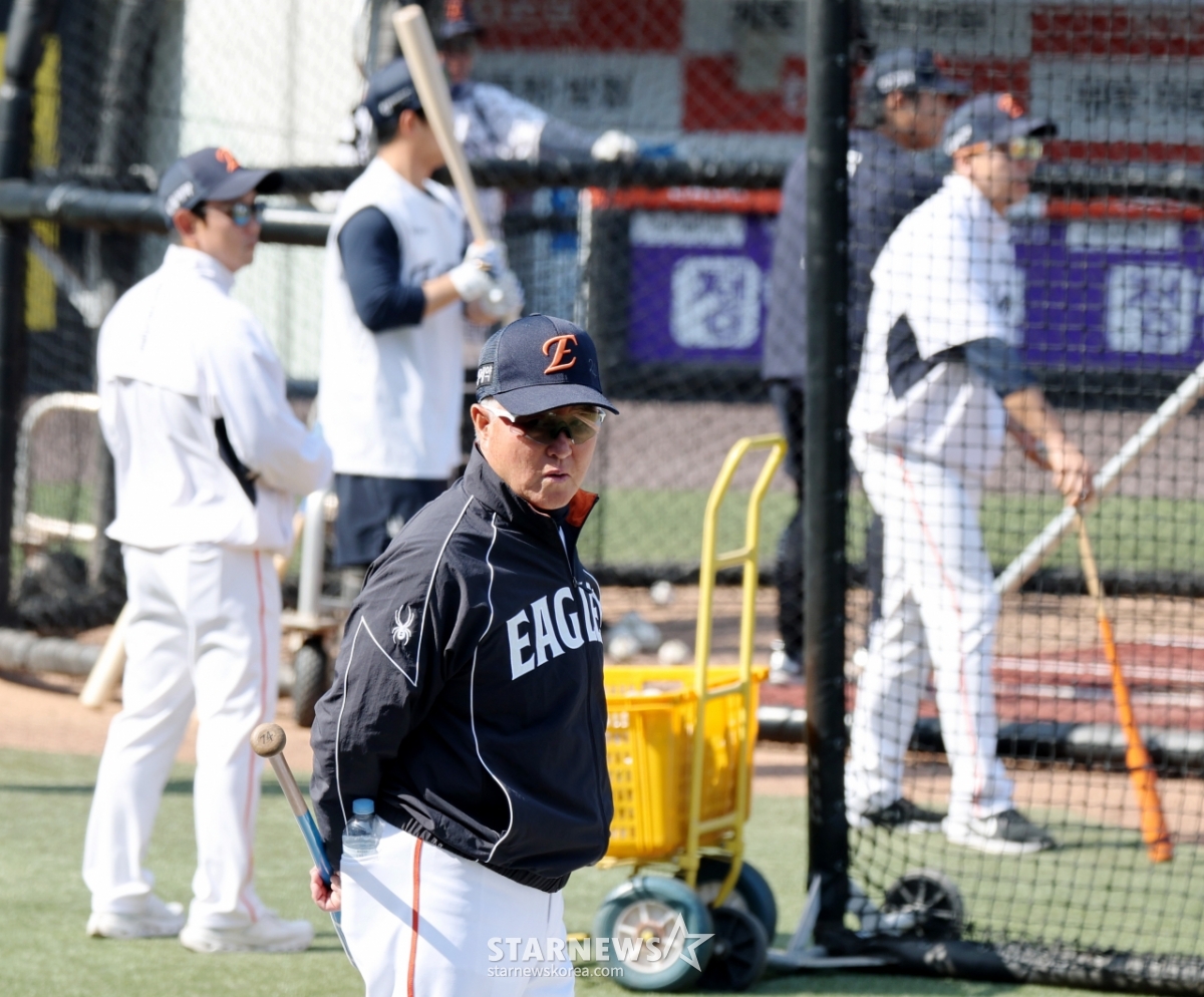 ハンファの金卿文(キム·ギョンムン)監督が15日、大田(テジョン)ハンファ生命ボールパークで行われる2026KBOリーグのハンファイーグルスと三星(サムスン)ライオンズの試合を控え、選手たちの練習を見守っている。 2026.04.15.