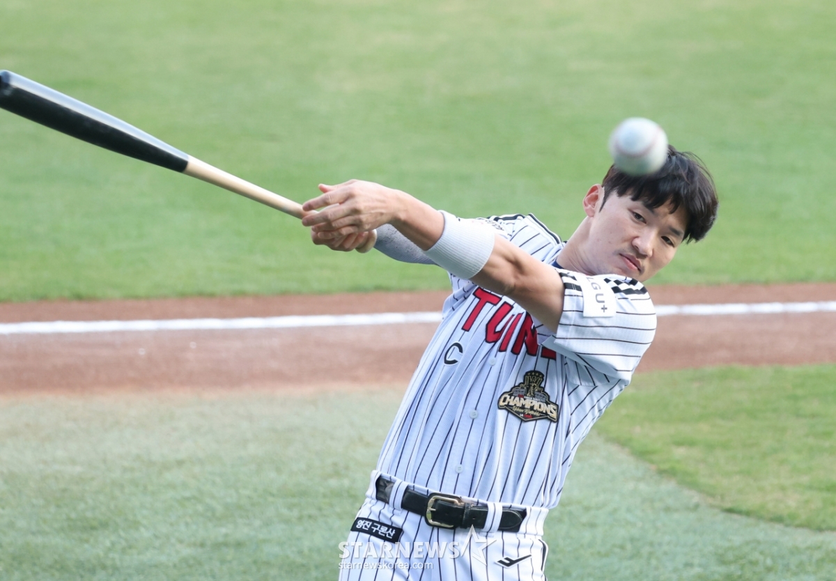 LGの朴へミンが打撃練習をしている。