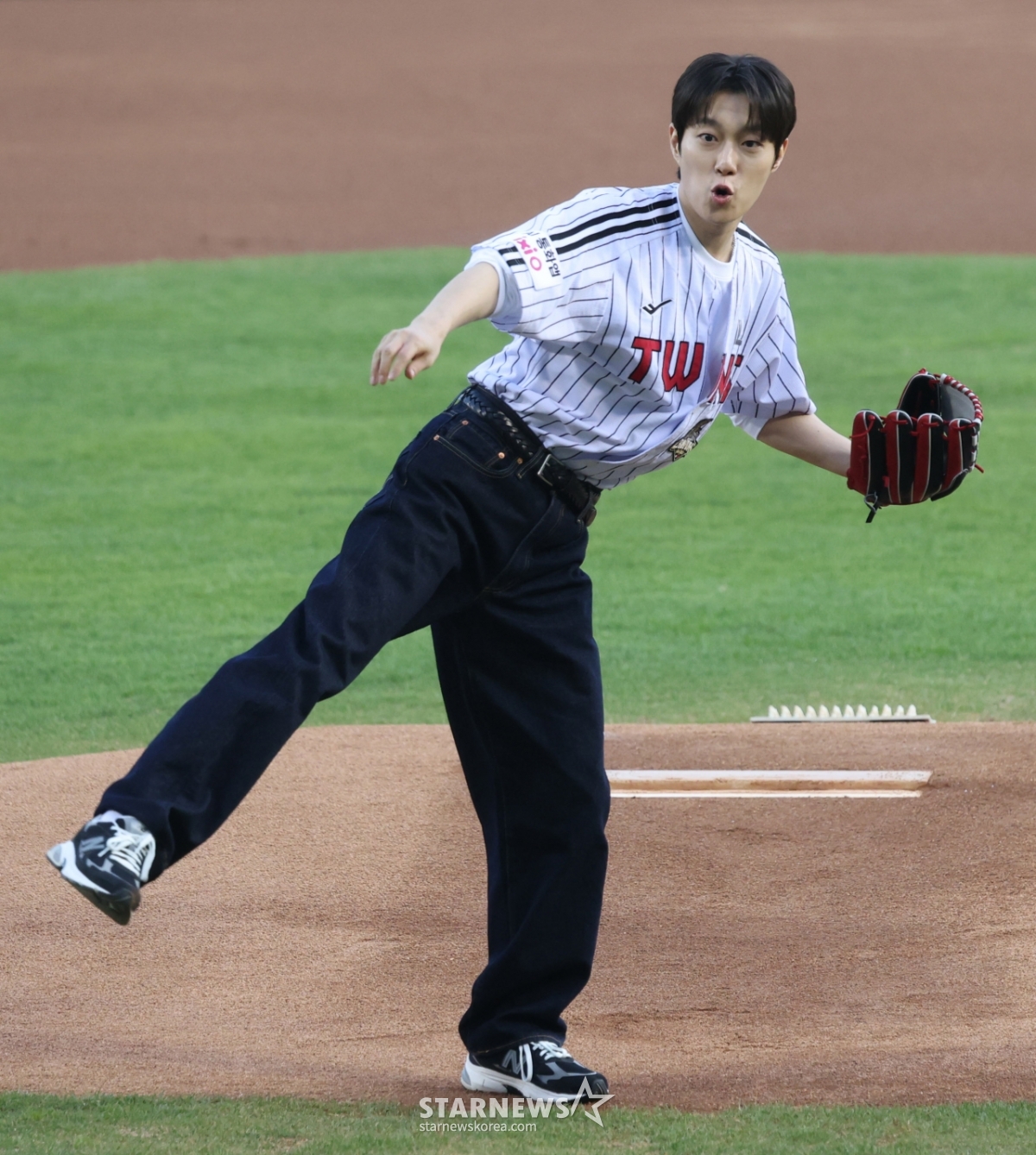 俳優兼ハイライト(HIGHLIGHT)メンバーのユン·ドゥジュンがLG勝利祈願の始球式をしている。