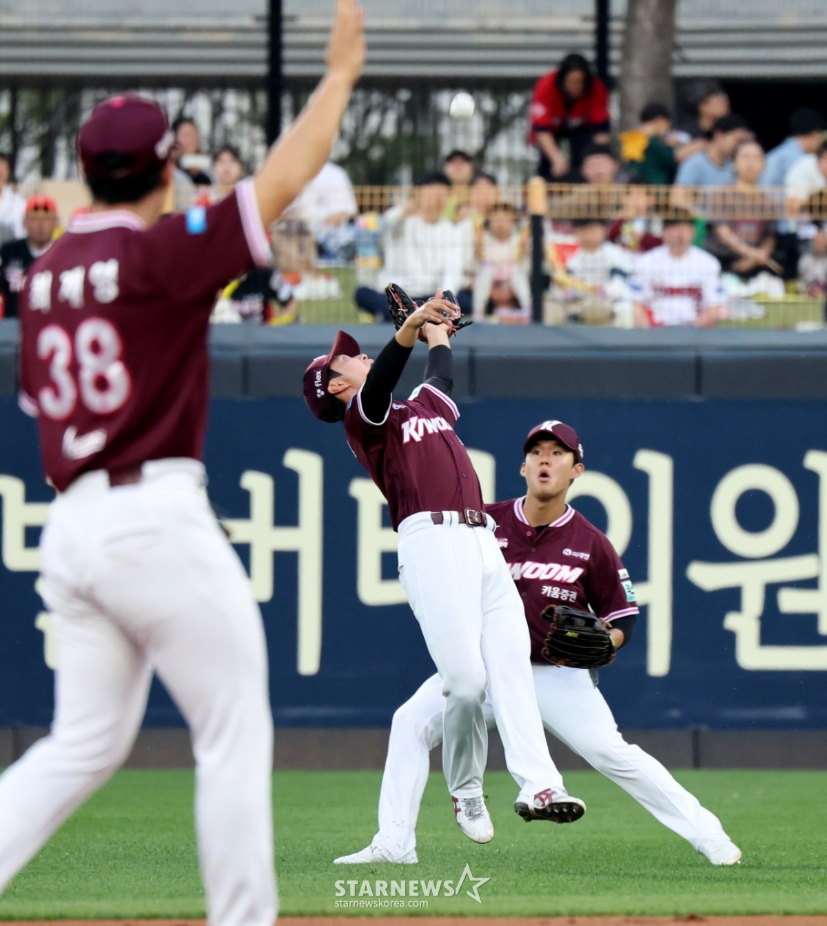 キウム2塁手のヨム·スンウォンが16日、光州KIAチャンピオンズフィールドで開かれる2026KBOリーグ起亜タイガースとキウムヒーローズの試合1回裏、キム·ソンビンの打球をキャッチしている。 2026.04.16.