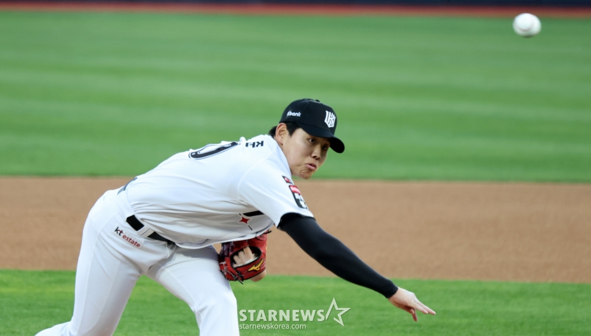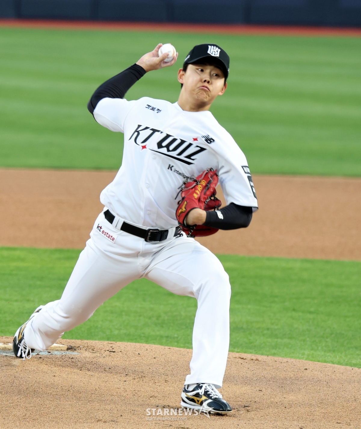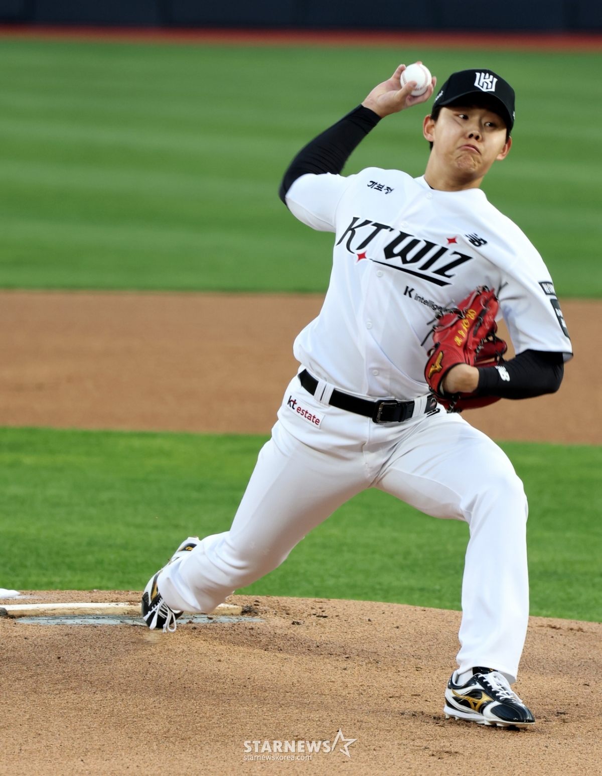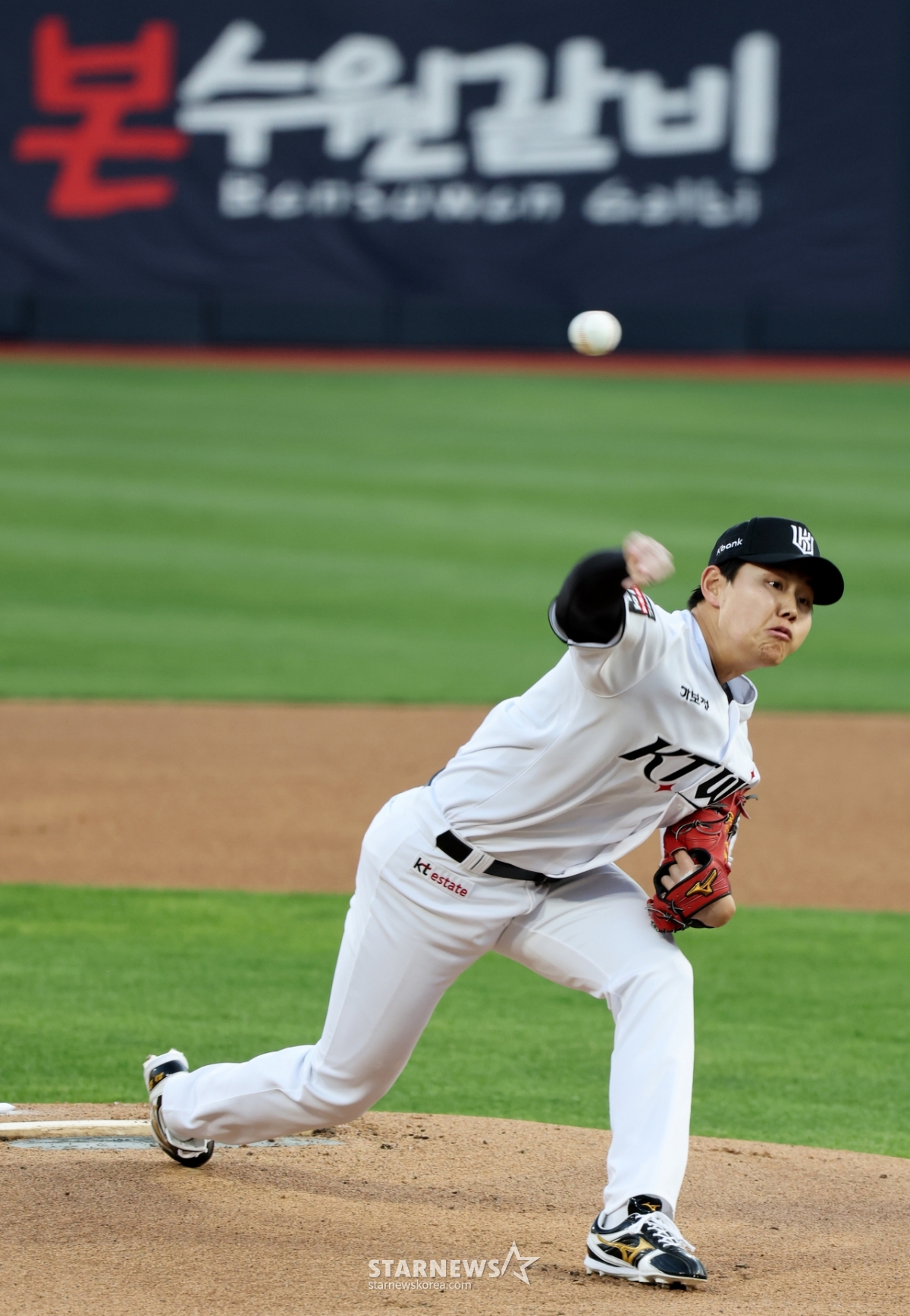 KT右腕先発のソ·ヒョンジュンが17日、水原KTウィズパークで行われた2026KBOリーグKTウィズとキウムヒーローズの試合で力投している。