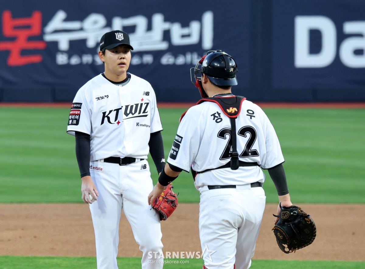 KT右腕先発のソ·ヒョンジュンが17日、水原KTウィズパークで行われた2026KBOリーグKTウィズとキウムヒーローズの試合で、1回表2死満塁の危機を乗り越えている。