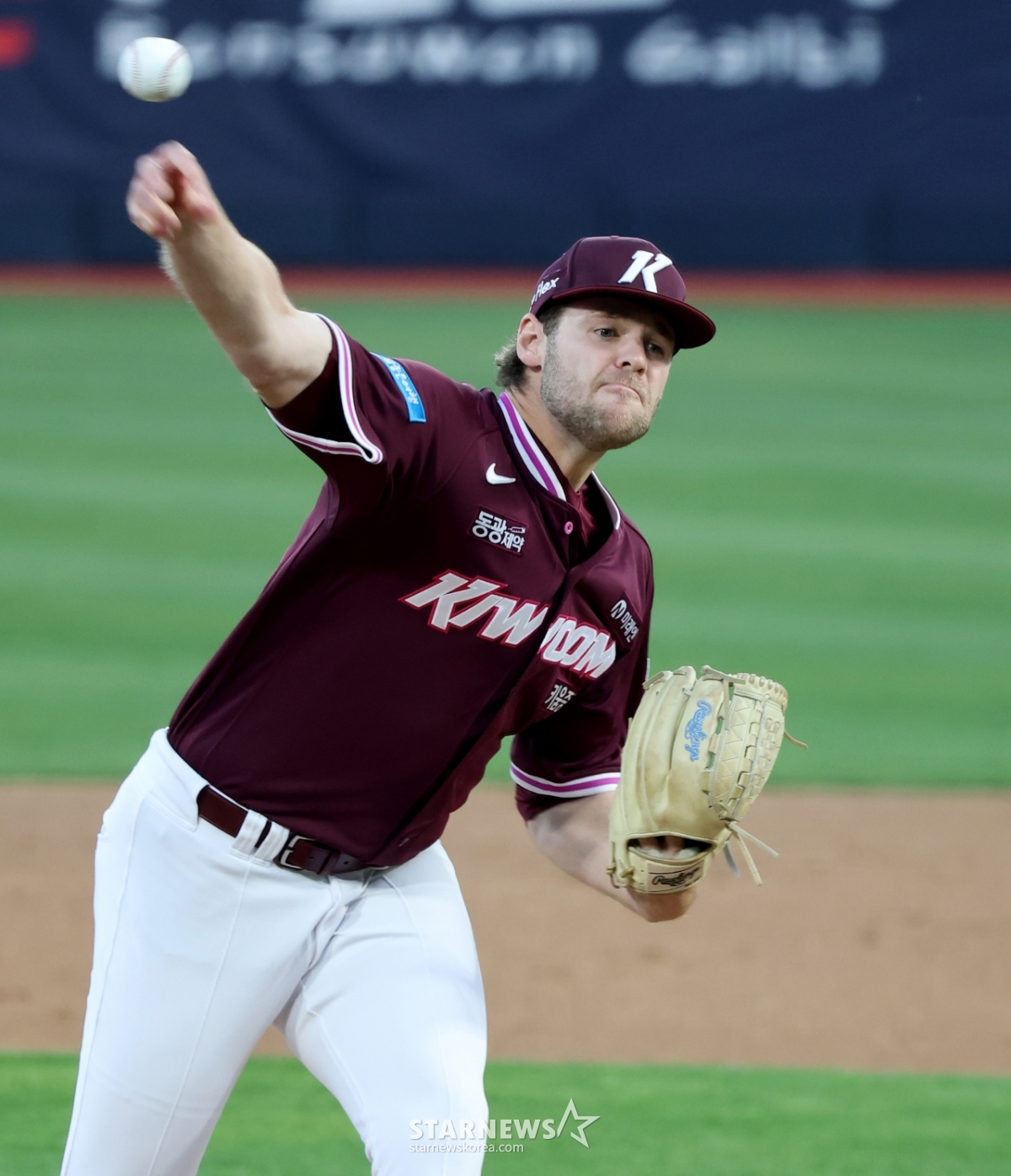 キウム右腕先発のワイルズが17日、水原KTウィズパークで開かれた2026KBOリーグKTウィズとキウムヒーローズの試合で力投している。 2026.04.17.